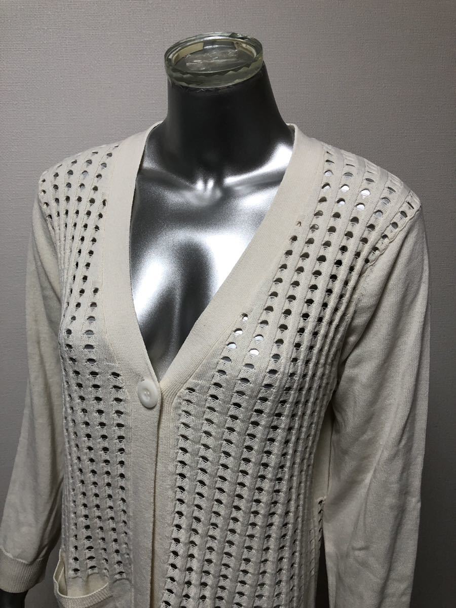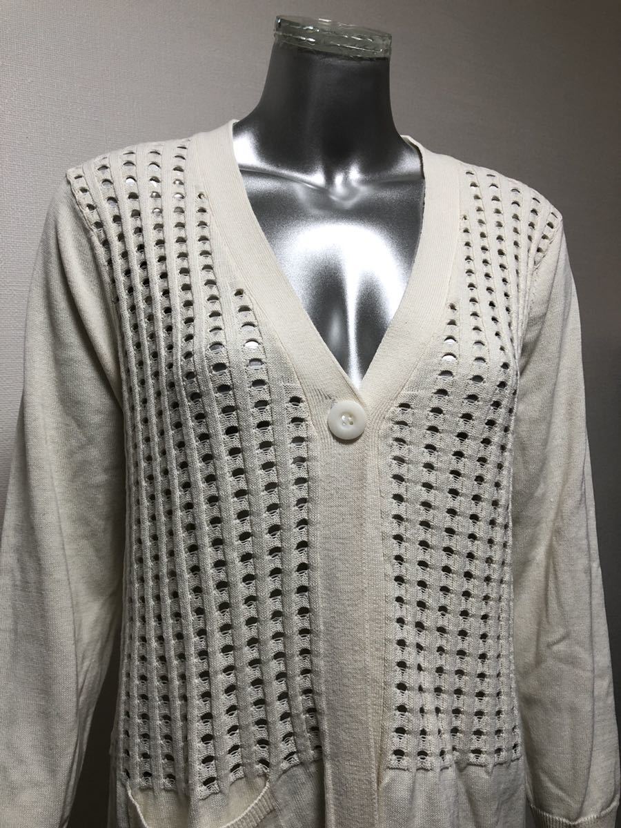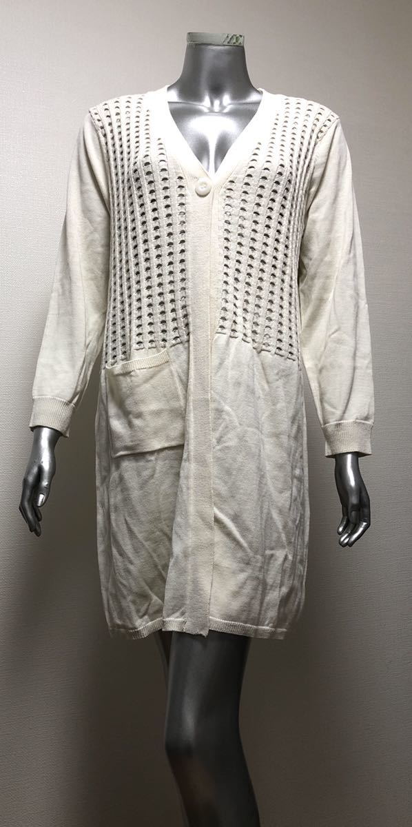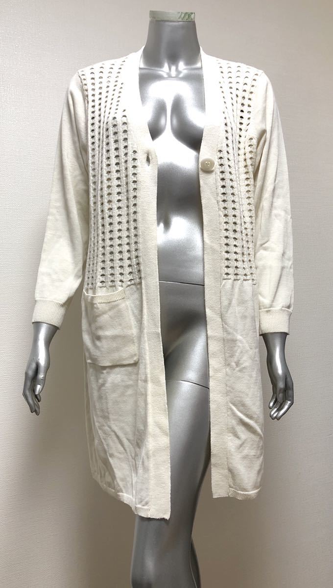二点落札で送料無料! K2A14 KAWAI OKADA カワイオカダ オフホワイト色 ロングカーディガン Lサイズ 使い勝手抜群!ロングカーデ 白