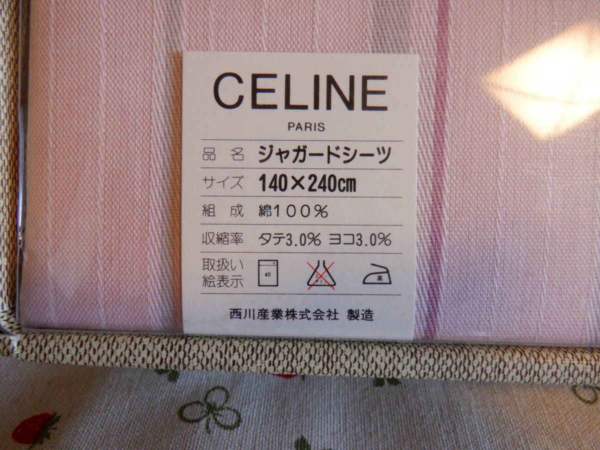 CELINE『セリーヌ★ジャガードシーツ シングル 綿100%~ピンク色 長期保管品シミあり』~箱付き 外箱に破れ・傷みありになります。シーツのサイズですが、140cm×240cmあります。長期保管品になりますので、シミがありますので、ご理解いただける方のみ入札をお願いいたします。外箱に破れ・傷みがありますので、ご理解いただける方のみ入札して下さい。自宅にて長期保管品につき現状渡しとなります。ノークレームノーリターンでお願いいたします。神経質な方は、入札をご遠慮下さい。新規の方・悪い評価が多い方の入札は、こちらの判断で取り消すことがあります。