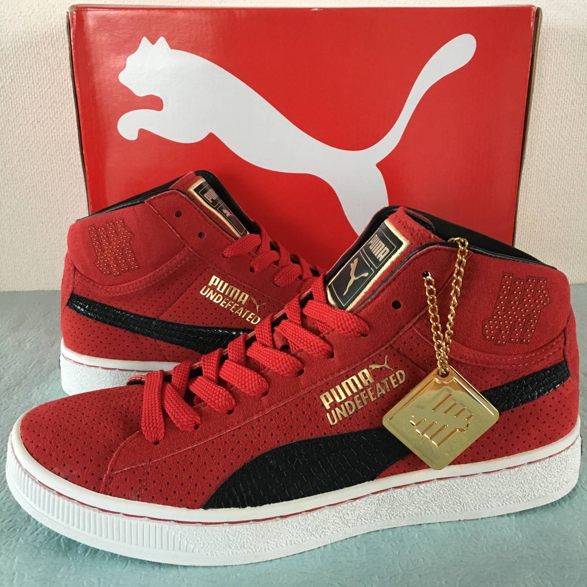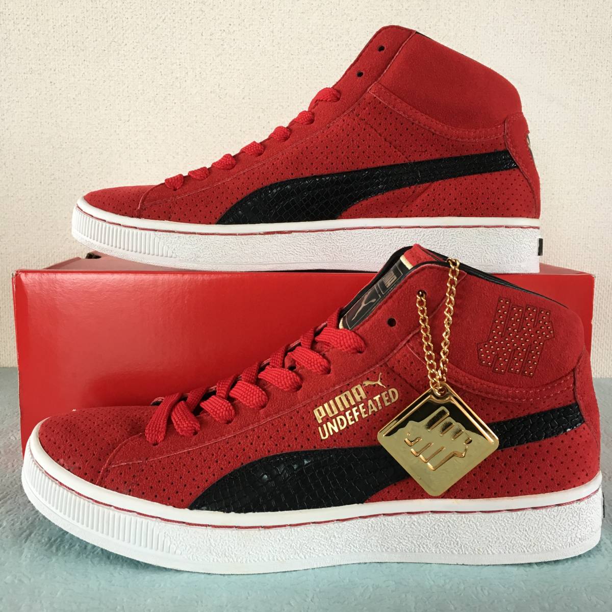 2009年PUMA限定ライン【The List】にてUNDEFEATED×PUMA 24K(純金)コレクションとして少量生産された金属タグ付き【Undefeated×Puma Suede 24K Mid II (PURE GOLD)】"RED(レッド)"/27.0cm/未使用品です。
