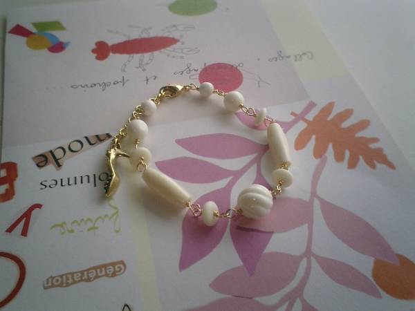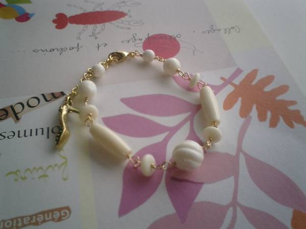 ボヘミアン・ガール・・シリーズです♪ロマンチックなボーンのブレスレットです♪6ミリ、8ミリの丸玉、12ミリの彫り玉、ディスク、6×18ミリのナツメなどデザイン違いのボーンを合わせてクラシカルな表情です♪長さは17センチ+アジャスター6センチで最長23センチ位です♪♪お揃いのネックレスも出品しています♪シンプルで飽きのこないいつまでも着けられるデザインを考えて作りました♪ハンドメイドをご理解頂いてノークレーム、ノーリターンでお願いします