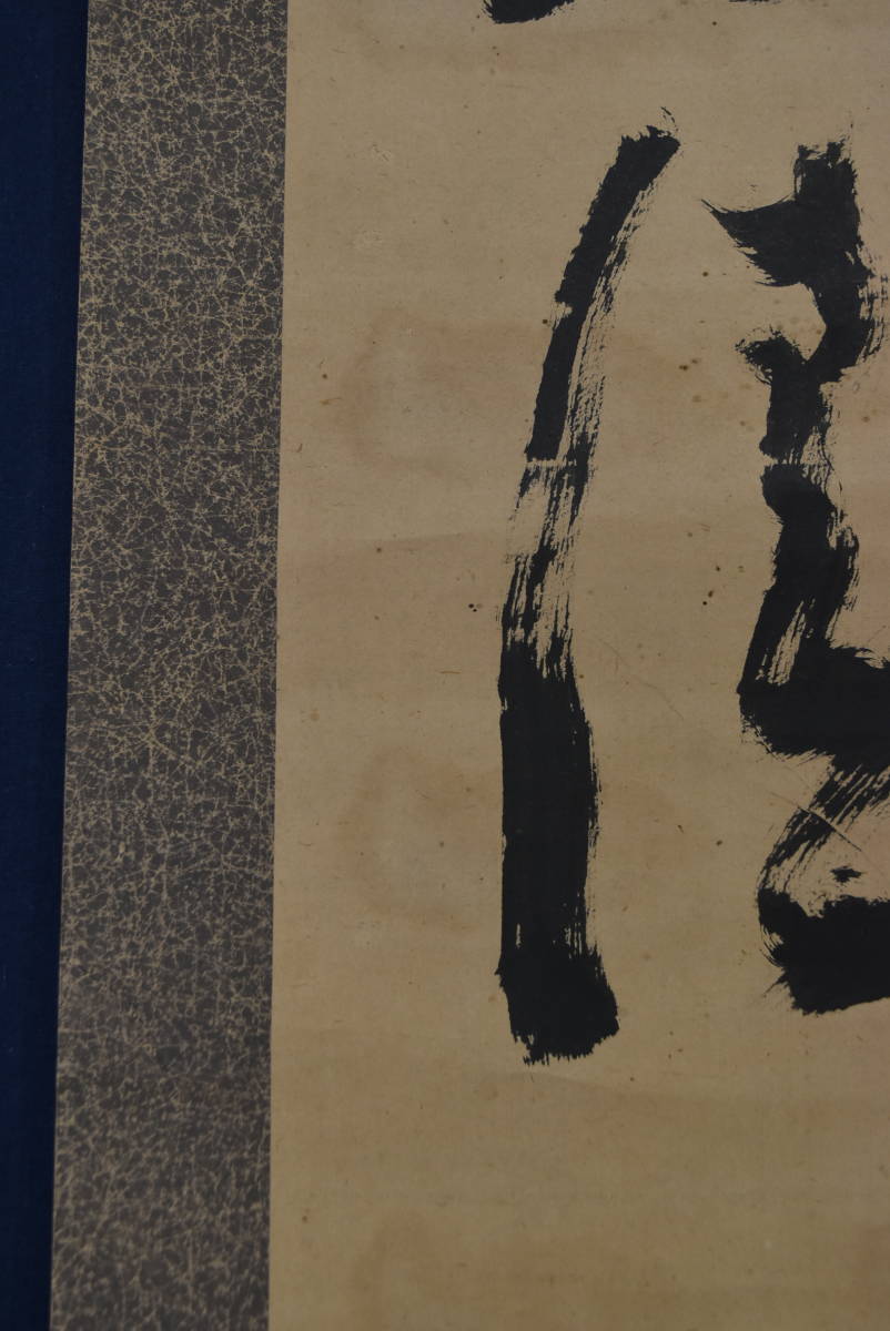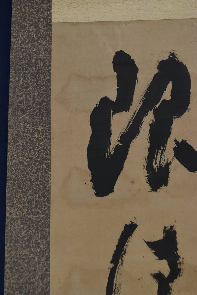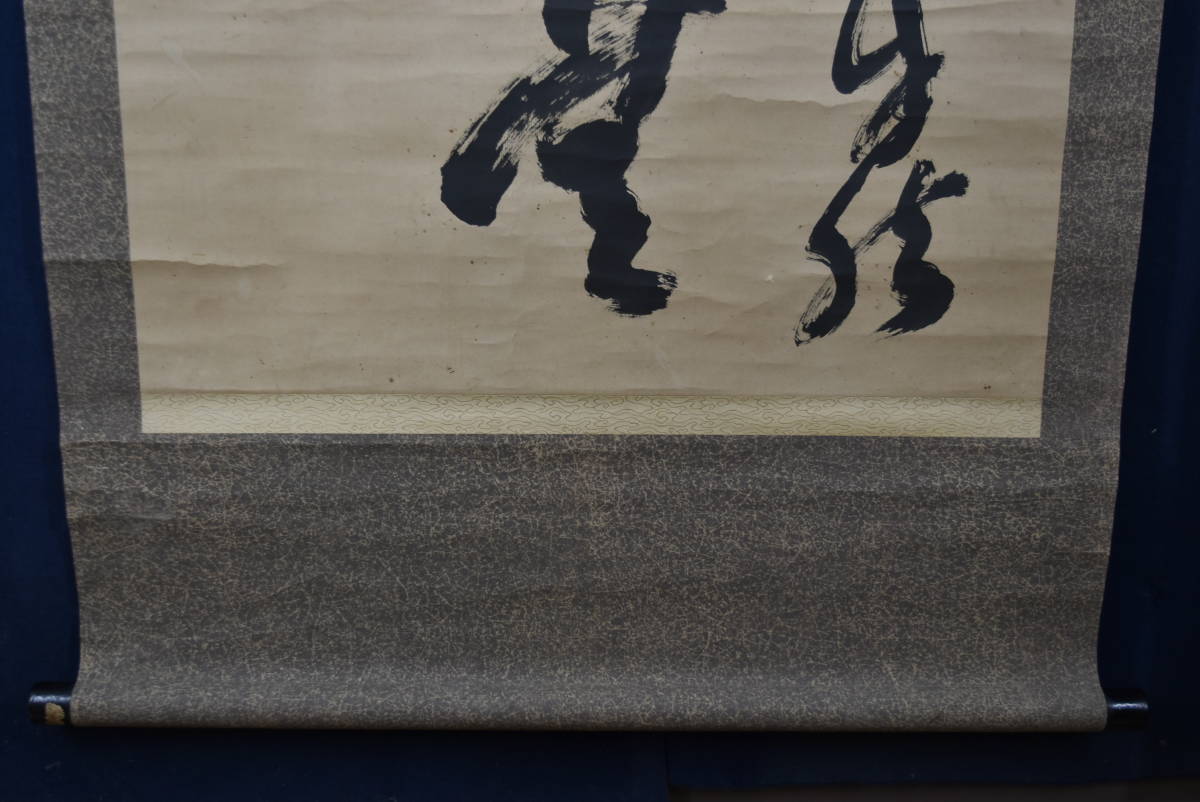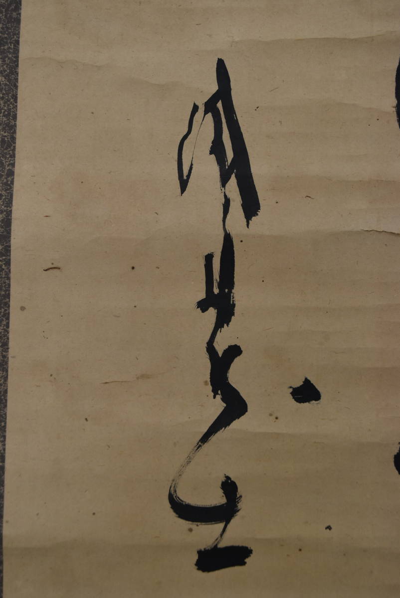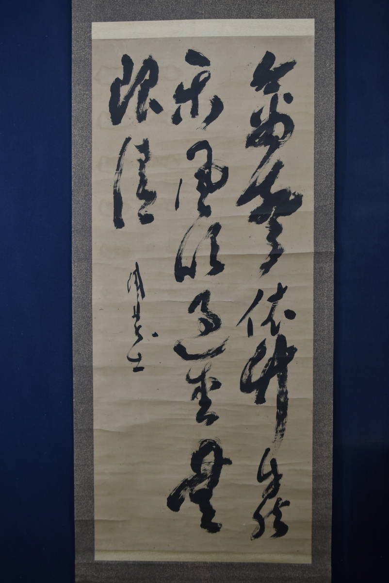 【作品状態】 本紙は紙本肉筆です。本紙は薄汚れ、全体に汚れシミ、多数の折れ、巻シワあります。表装は紙表装で、時代感あり、薄汚れ、天の左端に数ヶ所の欠損、折れ、巻シワあります。