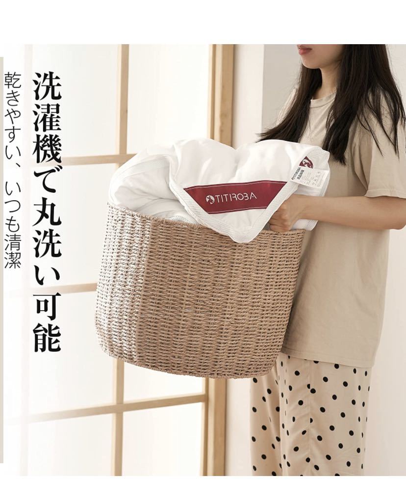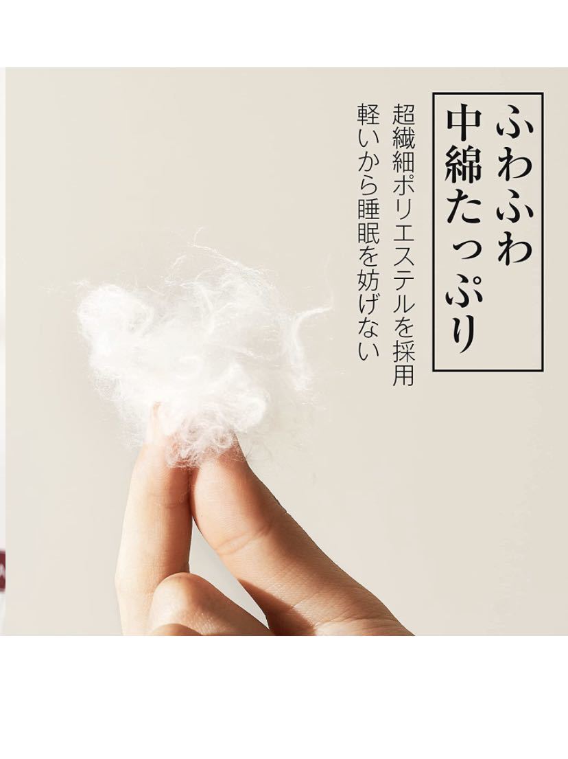 【ボリューム感たっぷり】詰め物:中空構造ポリエステルわた(1400g)。空気をたっぷり含む中空構造のポリエステルを採用し、羽毛のような軽さで、ふわふわで包み込まれる。羽毛のニオイが苦手な方に適用。