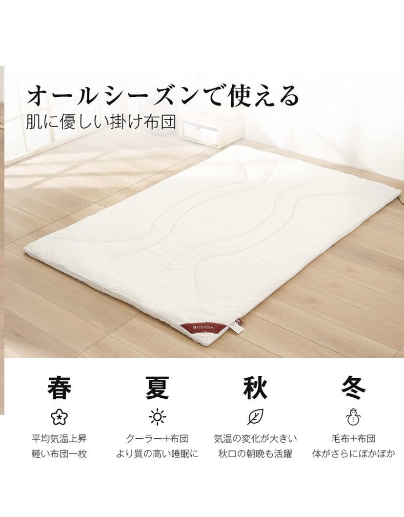 【なめらかな肌触り】側生地:中空構造ポリエステルわたを採用する。羽毛タッチのような軽さと柔らさ、肌触りが良い。子供・高齢者まで使用できる。