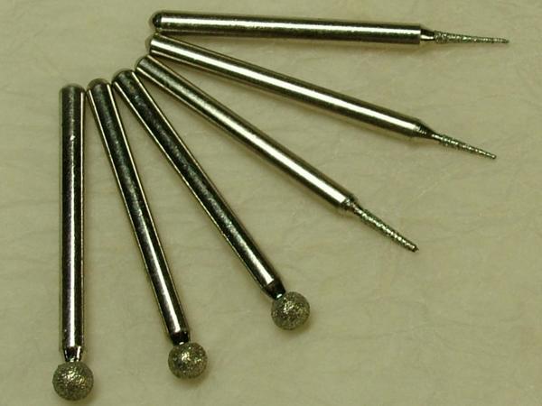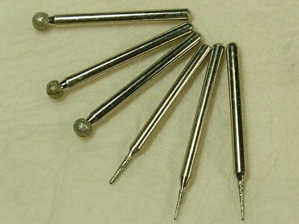 | ▲商品説明▲ | サイズ(約):先球/長さ38×頭直径4mm 先尖/長さ43mm 軸直径:全て約3mm 重量:6本で12.8g 翡翠職人も推薦の彫刻用ダイヤモンドビットです。同種類3本ずつ計6本セット。ガラス、陶器、石等の研磨、刻印、彫刻、文字加工、清掃、仕上げ等にどうぞ。 ※最高対応回転数25000rpm ミニルーター用です。 | |