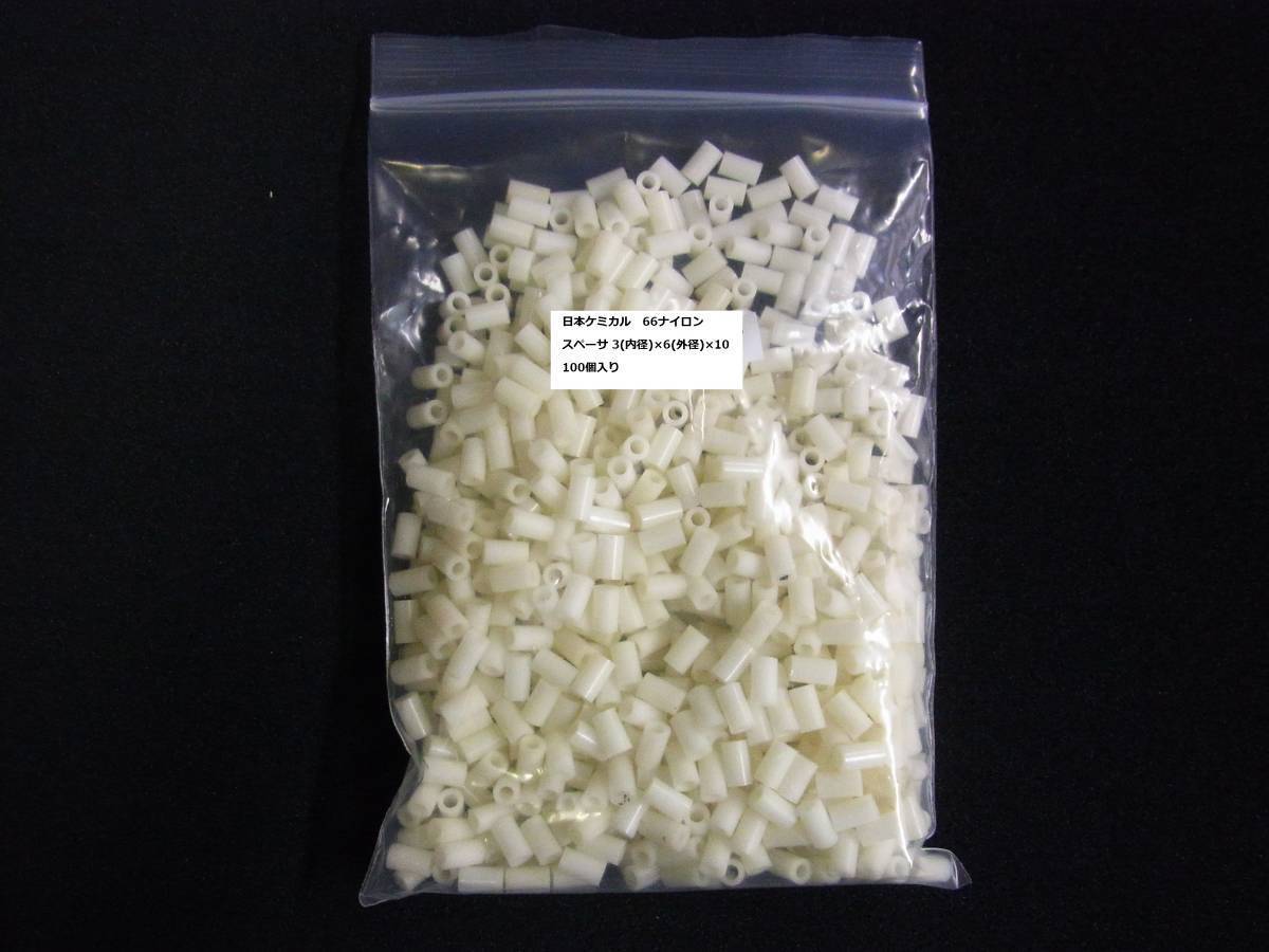 日本ケミカル 66ナイロン スペーサ 3(内径)×6(外径)×10 (長さ) 100個 [BOX162-535