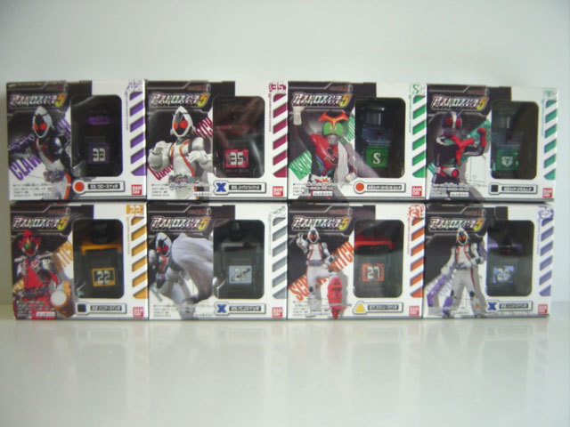 1.22.ハンマースイッチ 2.25.ペンスイッチ 3.27.スクリュースイッチ 4.28.ハンドスイッチ 5.33.クロースイッチ 6.35.ジャイアントフットスイッチ 7.仮面ライダー2号スイッチ 8.仮面ライダーストロンガースイッチ ◇オーメダル同様に「DXフォーゼドライバー」(別売り)と連動! データカードダス「仮面ライダーバトルガンバライド」と連動! スイッチ裏面のQRコードを読み込むことで、各スイッチの情報や 音声を携帯電話で楽しむことが出来ます! |