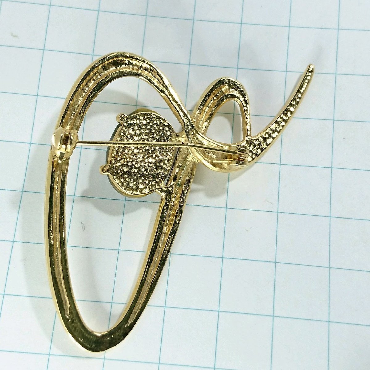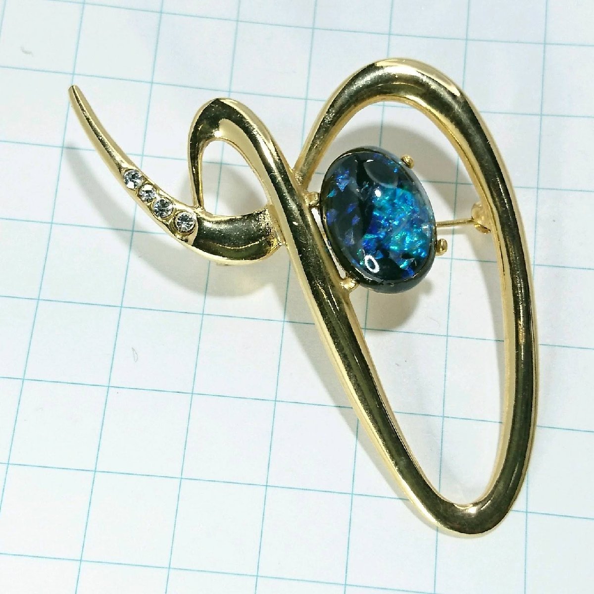 送料無料)ビンテージ☆七宝焼きブルーストーン 流線デザイン☆アンティークブローチ A13720