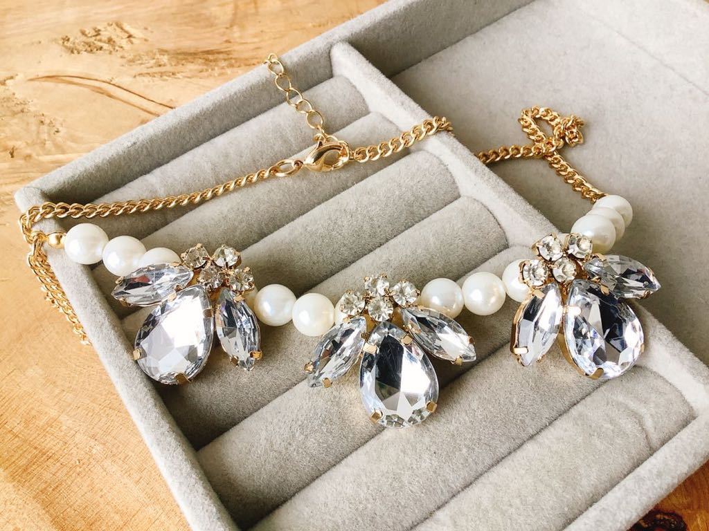 【フェイクパール&キラキラビジュー】ゴールド ネックレス | |||