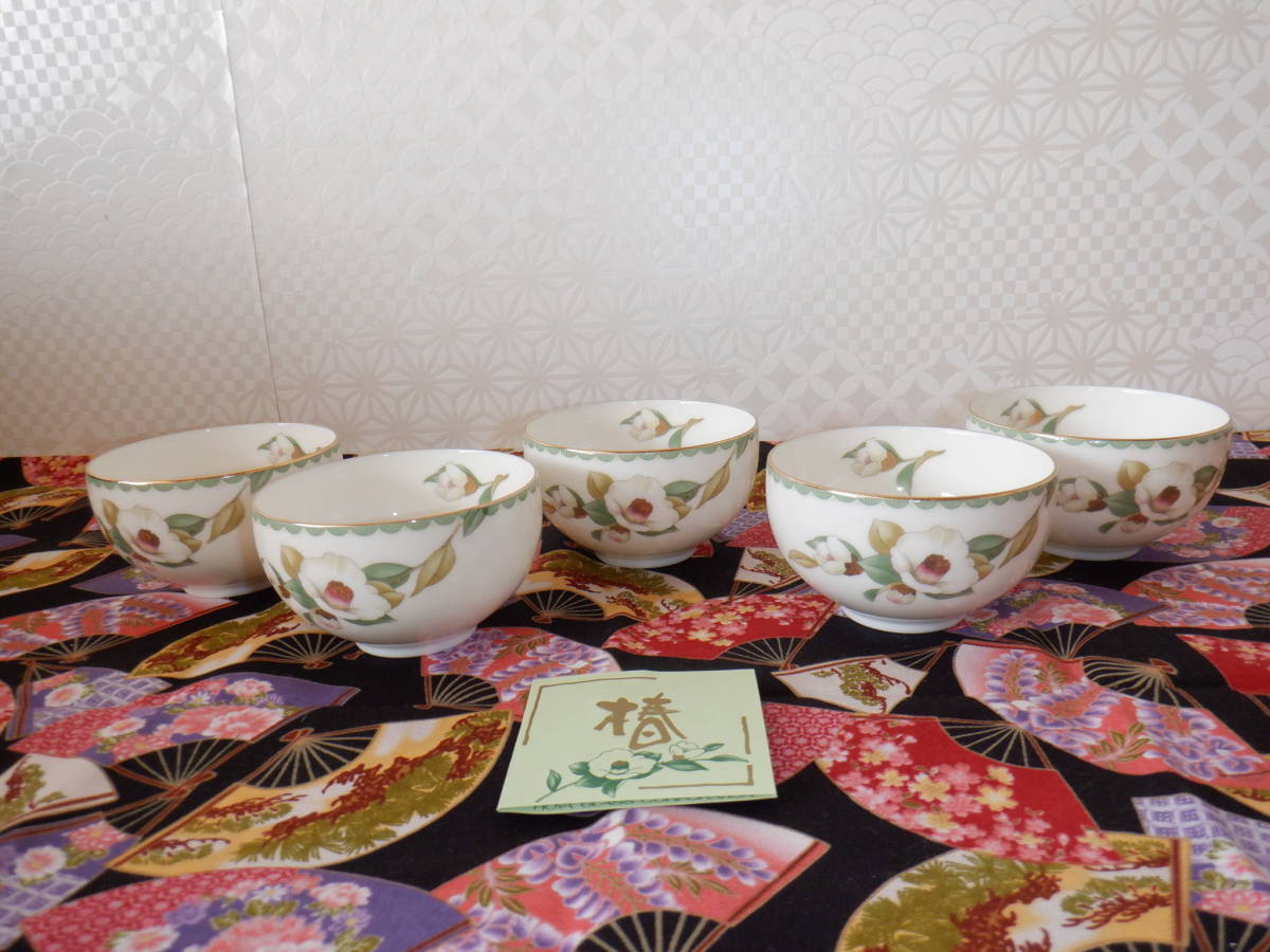 保谷(HOYA)『椿★金彩 椿の花柄模様の湯呑揃~内側にも椿の花柄あり~湯呑み5客セット』~箱付きになります。湯呑みのサイズですが、口径9cm、高さ5.1cmになります。採寸の方ですが、多少の誤差はお許し下さい。自宅保管につき現状渡しとなります。ノークレームノーリターンでお願いいたします。神経質な方は、入札をご遠慮下さい。新規の方・悪い評価が多い方の入札は、こちらの判断で取り消すことがあります。