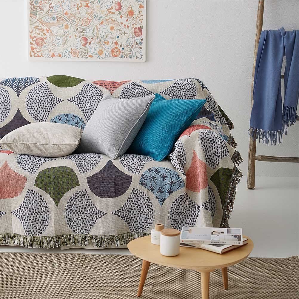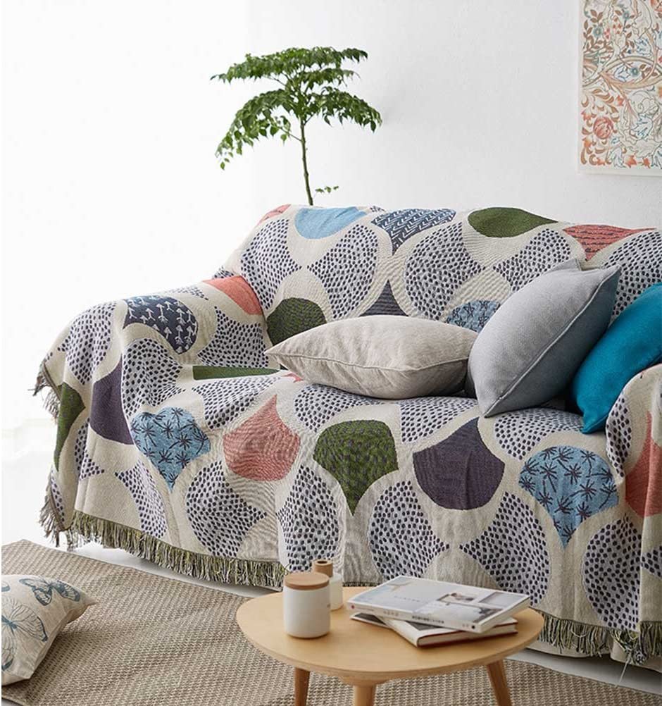 [送料込み] マルチカバー ソファー 北欧 銀杏葉 ブランケット 大判 おしゃれ カーペット 綿 多機能 80×150cm ソファーカバー かわいい