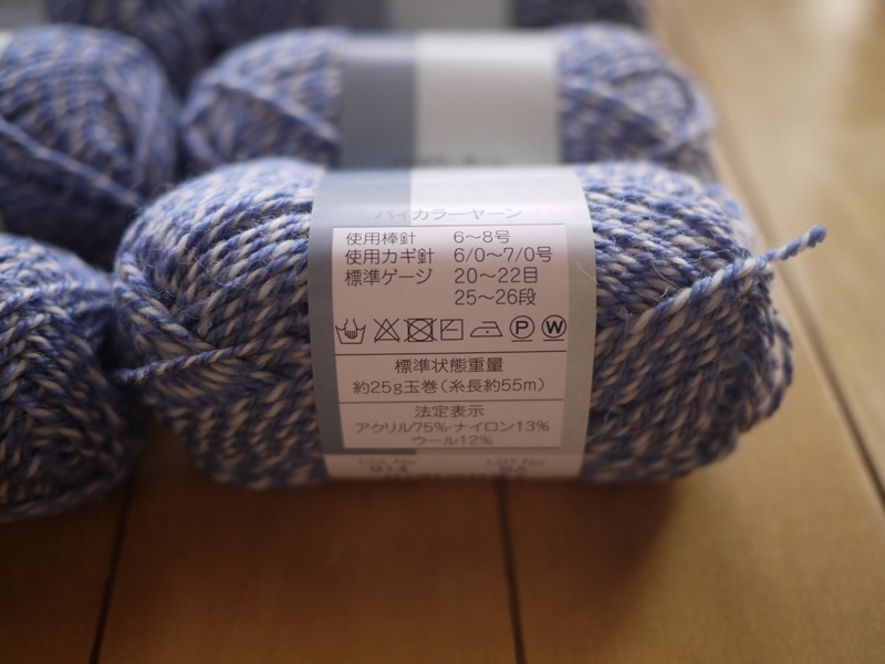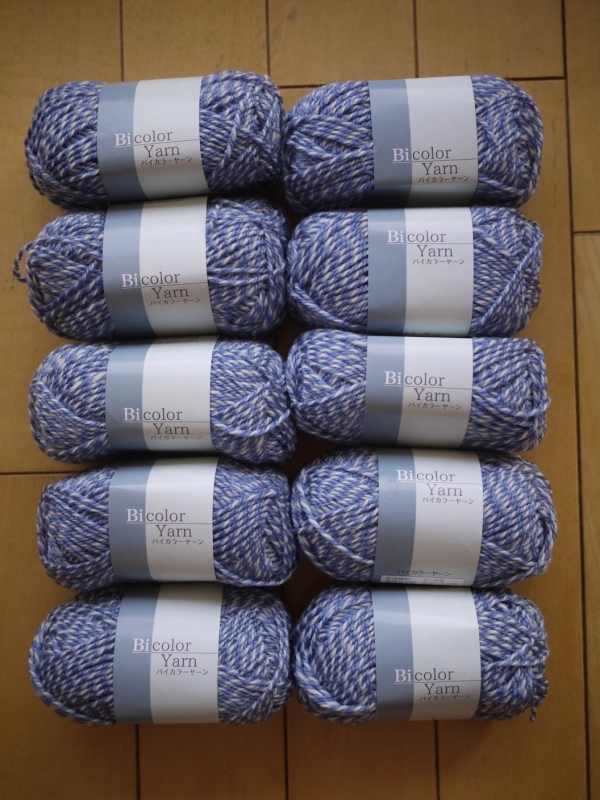 【元廣】バイカラーヤーン【青x白・COL NO.914】10玉セット・毛混毛糸・スキー毛糸