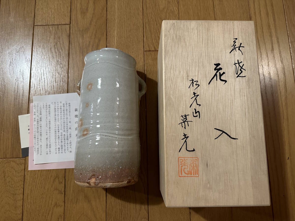 ♪萩焼 松光山 栄光 花入 共箱 未使用品● フラワーベース 花瓶 花器 茶道具 華道具 古美術