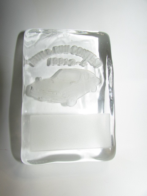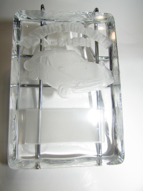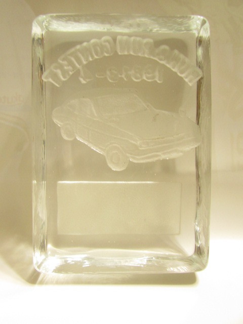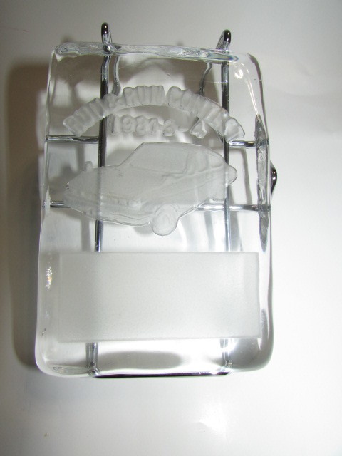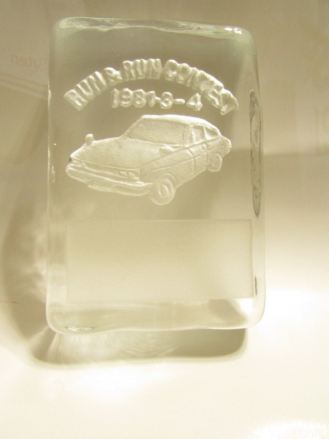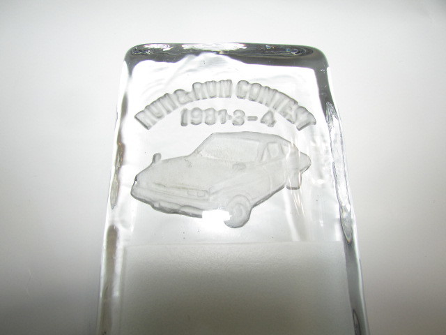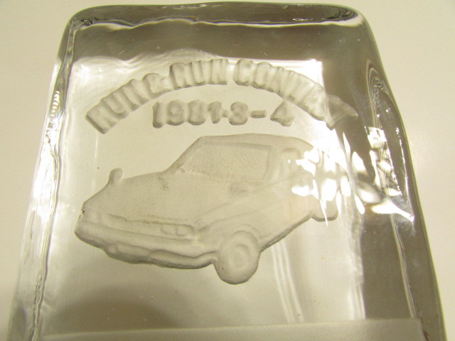 ( 会津若松市・旧家・蔵出し)( 昭和レトロ・1981年・RUN & RAN CONTEST 車模様のガラスの飾り物 )・貴重・珍品