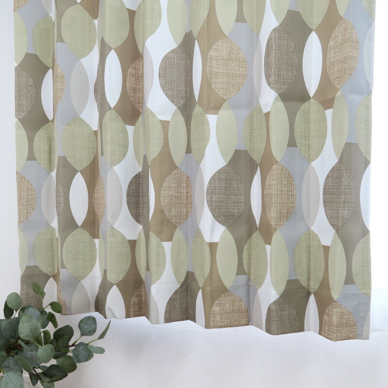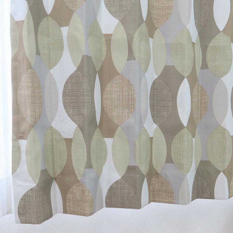 遮光カーテン 北欧 幾何学柄 ブラウン 幅125cm×丈190cm2枚 日本製 プリーツが綺麗な形態安定加工