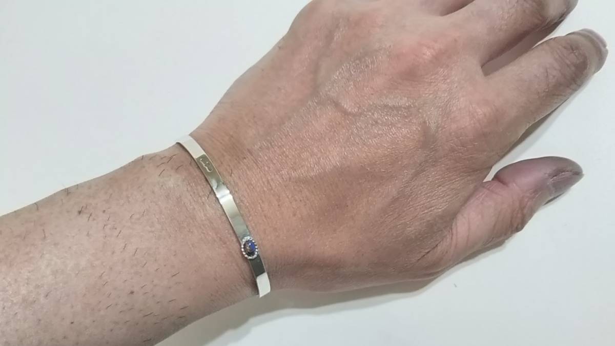 シルバー950にイーグルとパープルターコイズをつけたバングルです。ターコイズは小さいので見えにくいかもしれませんが