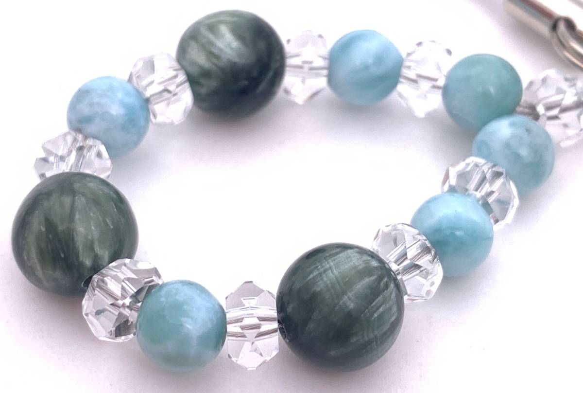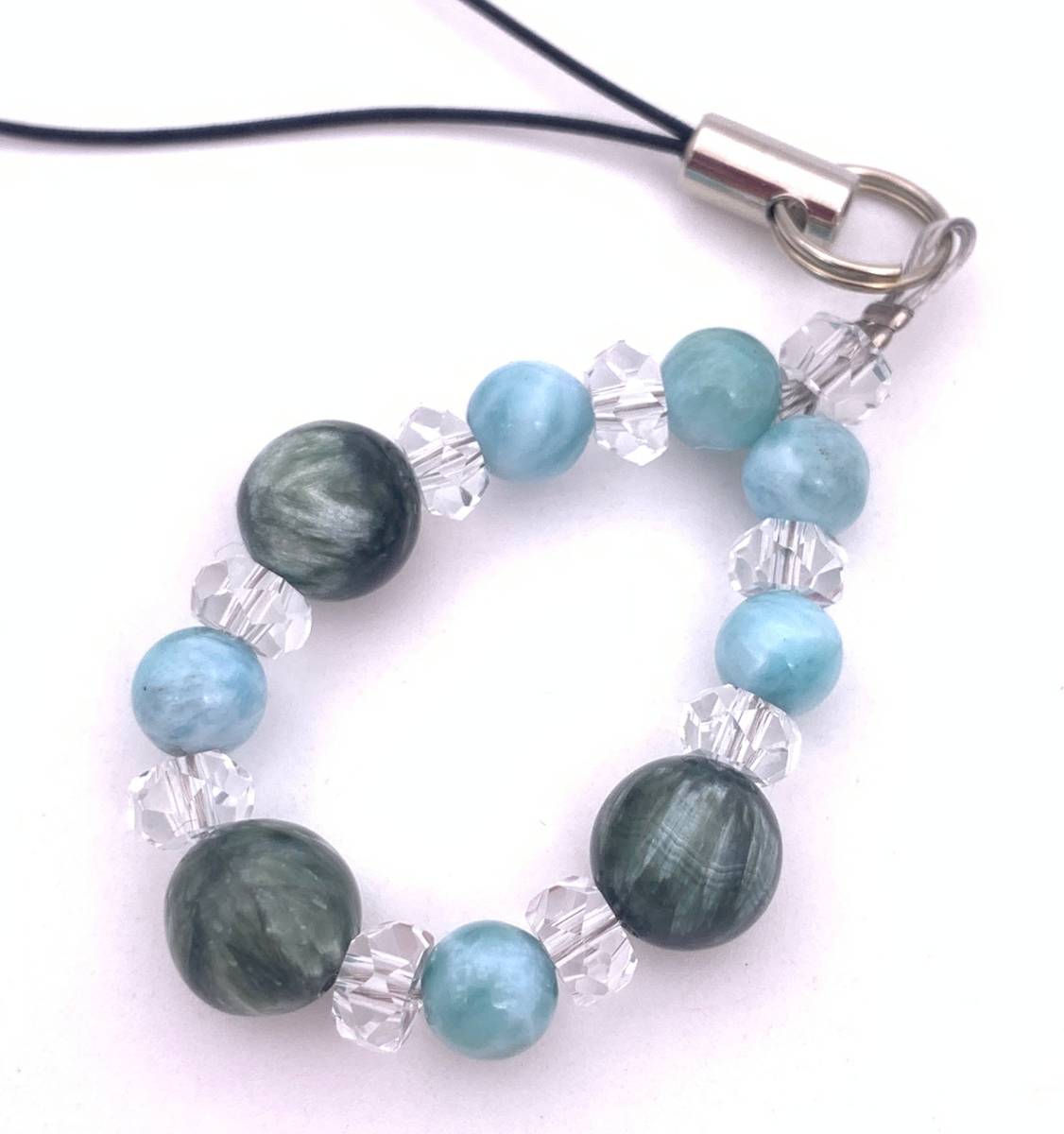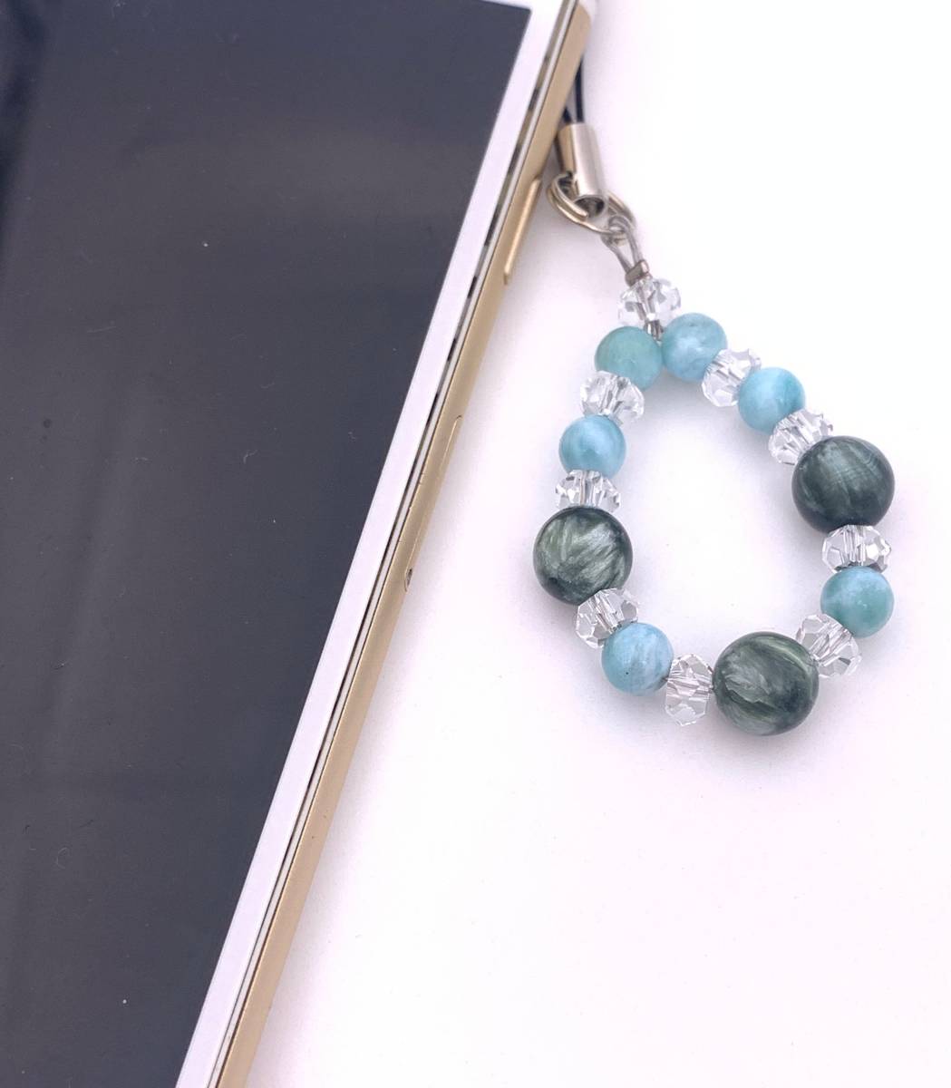 手作り!オリジナル★天然石ラリマー&セラフィナイトのストラップ