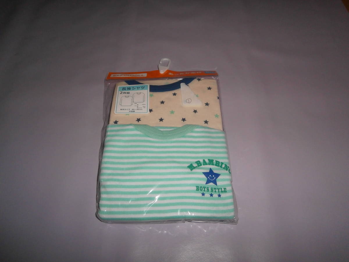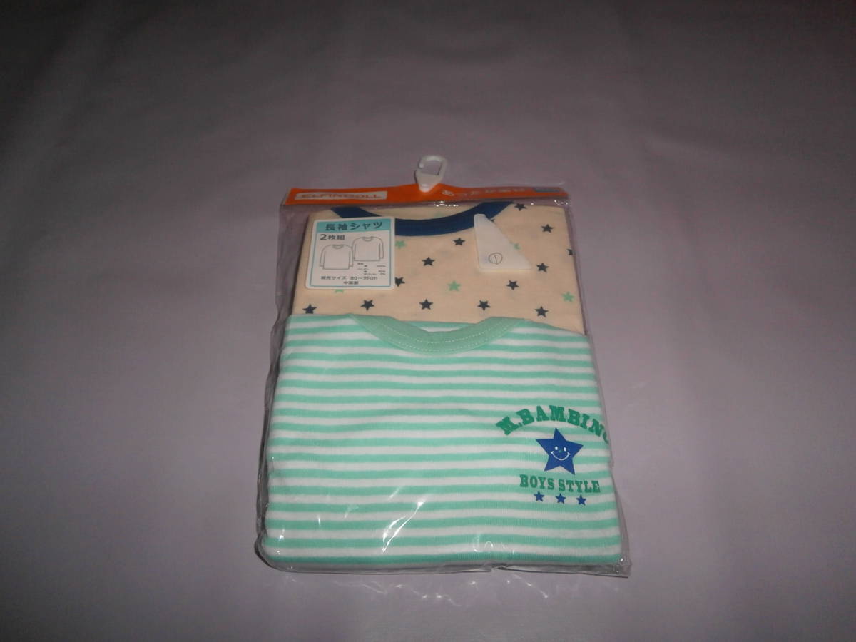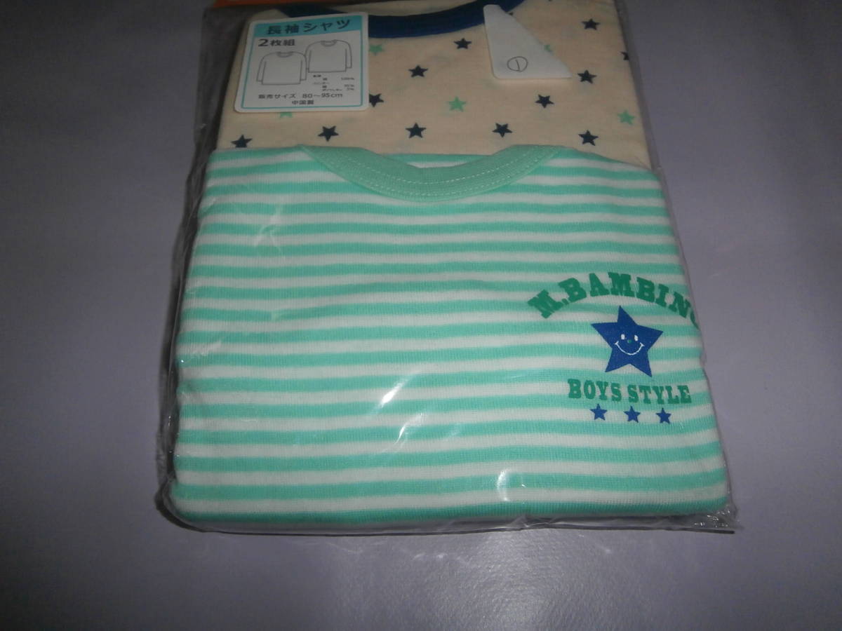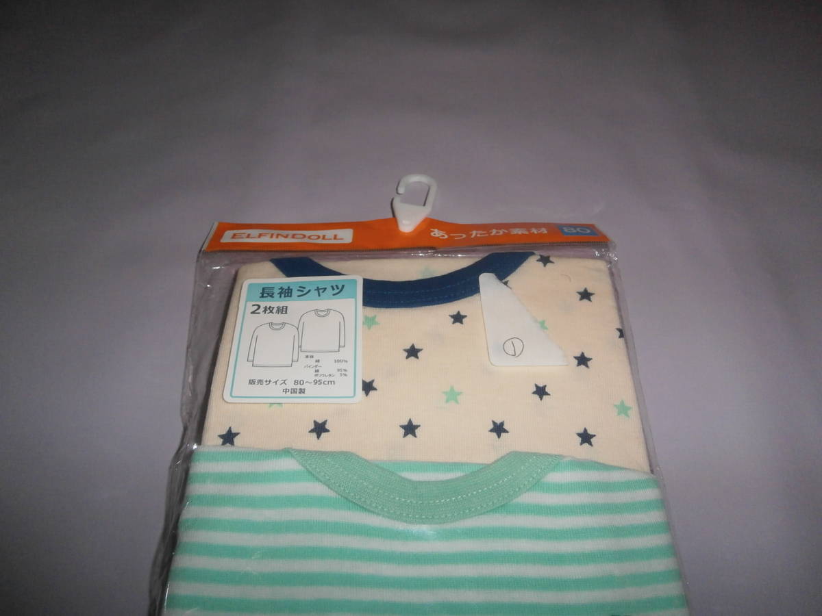 | 新品★男児男の子★あったか素材★長袖シャツ★2枚組★サイズ80★①★星柄ボーダー緑■ | ||