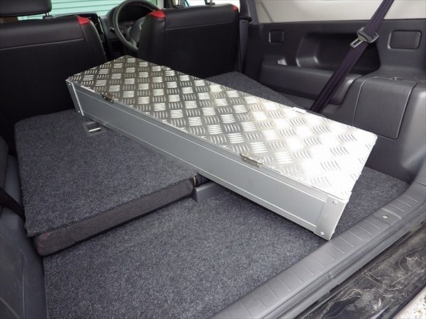 フラットデッキ装着後リアシートを前にたたむとトランク部の段差が無くなり