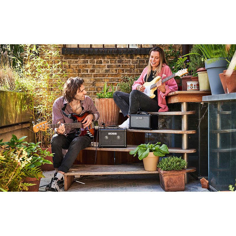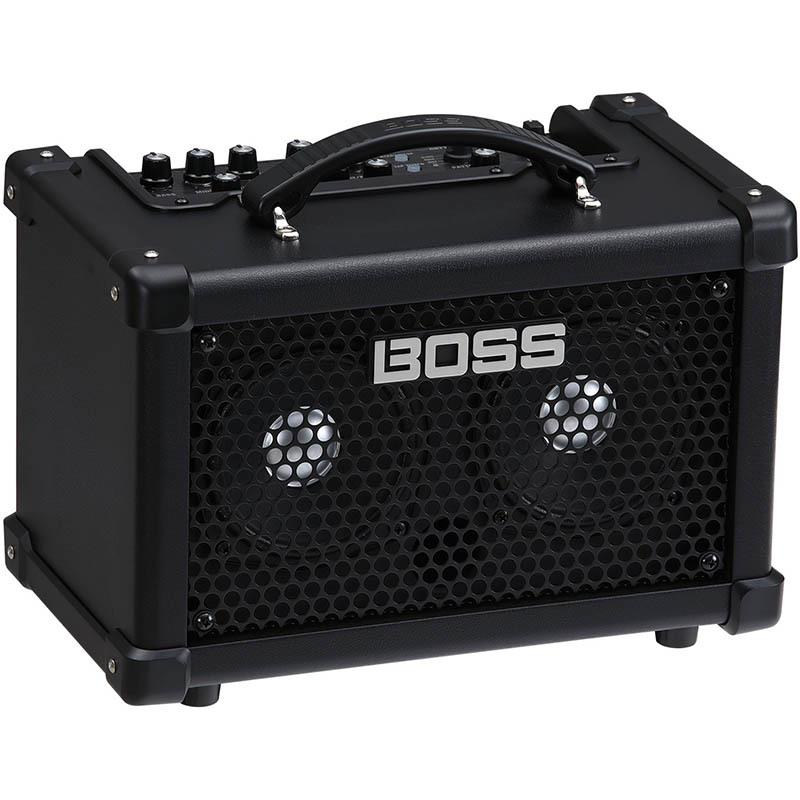 DUAL CUBE BASS LXはベース・ライフを豊かにする新感覚のベース・アンプです。場所を選ばず配置できるスリムなサイズに、カスタム・スピーカーを2基搭載しており、小音量でも十分な音圧を感じることができます。アンプ・タイプは、プレイ・スタイルやジャンルから選びやすい5種類を内蔵。BOSSの独自のノウハウと設計により、ピッキング時に弦の輪郭を感じ取れる様な生々しいレスポンスを実現しました。高品位なBOSSエフェクトも内蔵しているため、サウンド・メイクの可能性はさらに広がります。さらに、27種類にも及ぶリズム・ガイド機能を搭載しており、ベーシストに求められるグルーヴを養う練習も可能。アンプをPCへ接続してDAWにステレオ・レコーディングを行なったり、マイク付きのヘッドフォンを接続してパフォーマンスを配信したりする際にも活躍します。