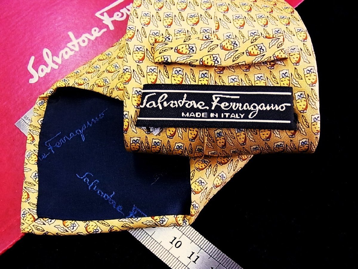 ★今週の特売★2761★高級ブランド【キャラ柄】★フェラガモ【鳥 フクロウ 柄】ネクタイ★