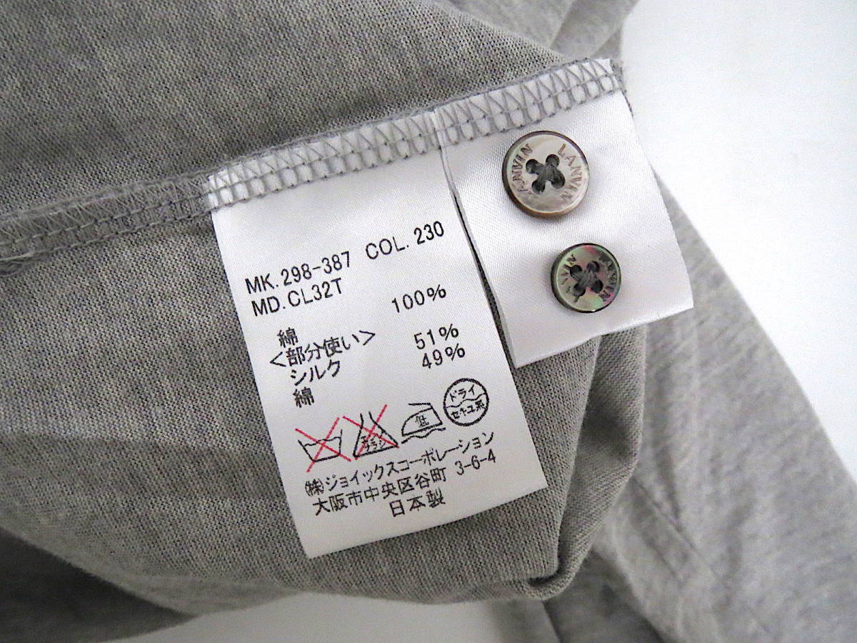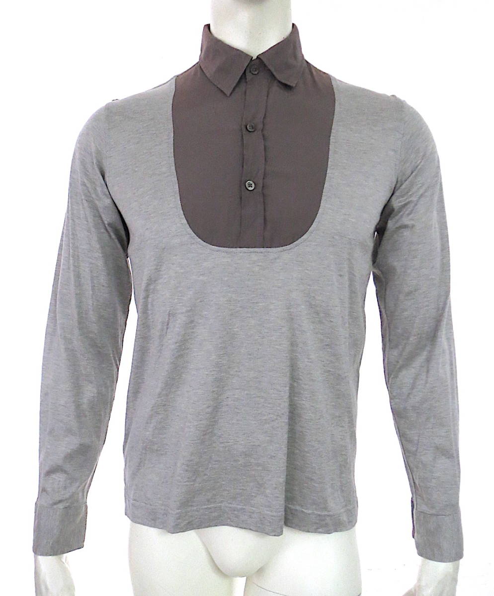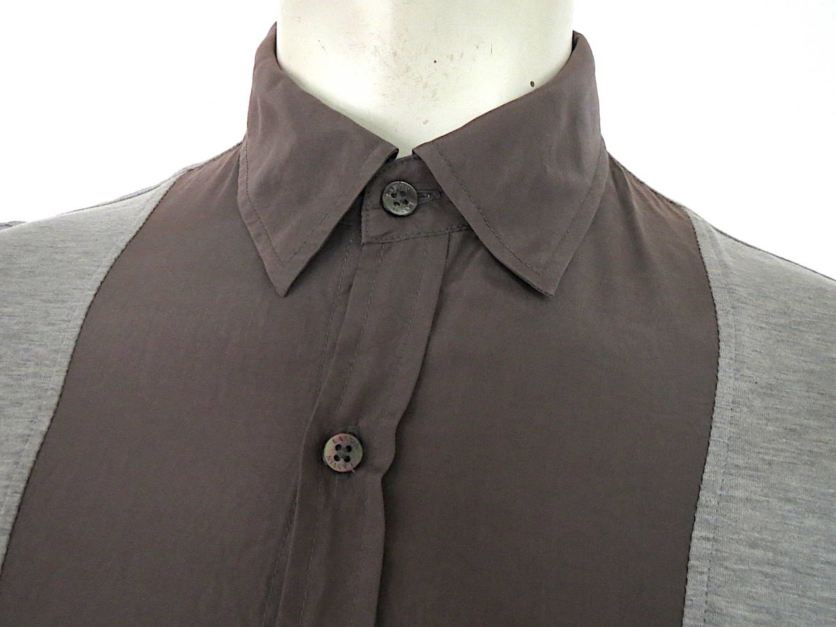 二点以上で送料無料! 2A42 LANVIN COLLECTION ランバンコレクション 未使用 トップス 長袖 メンズ M 切替シルク混 コットン グレー