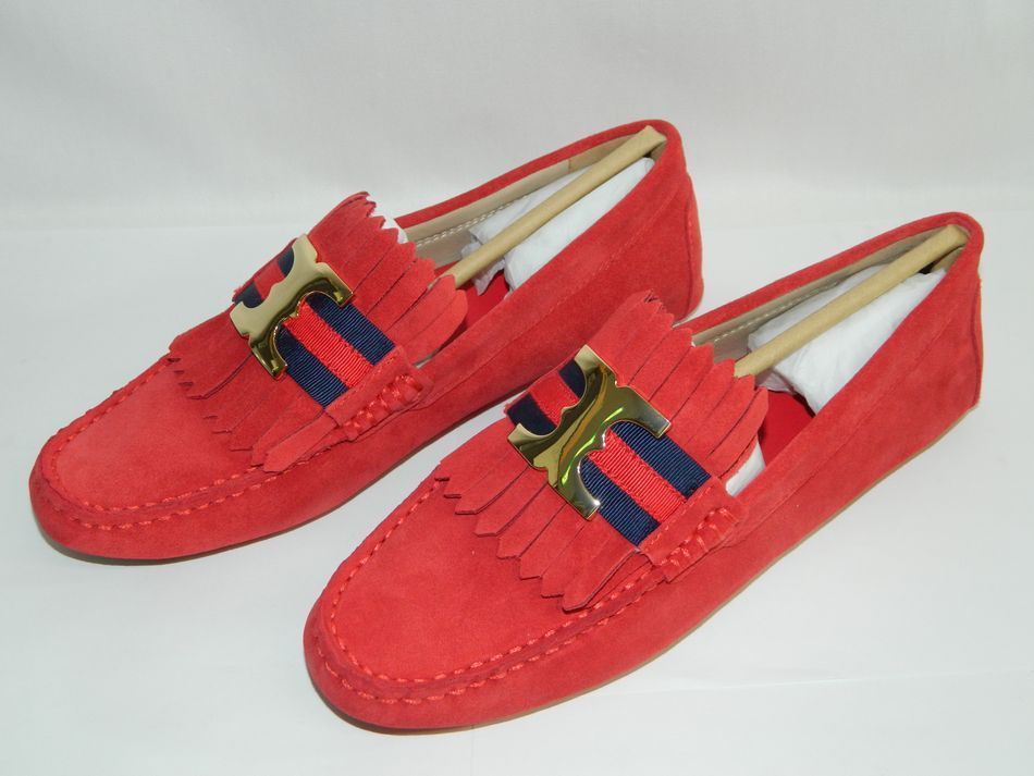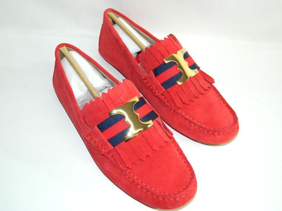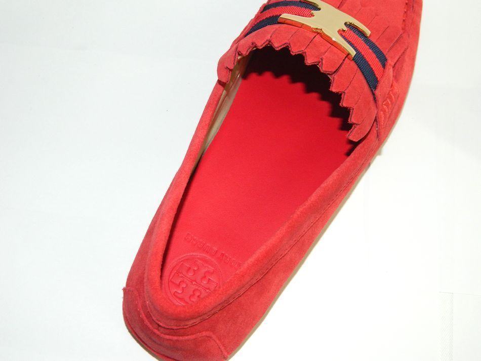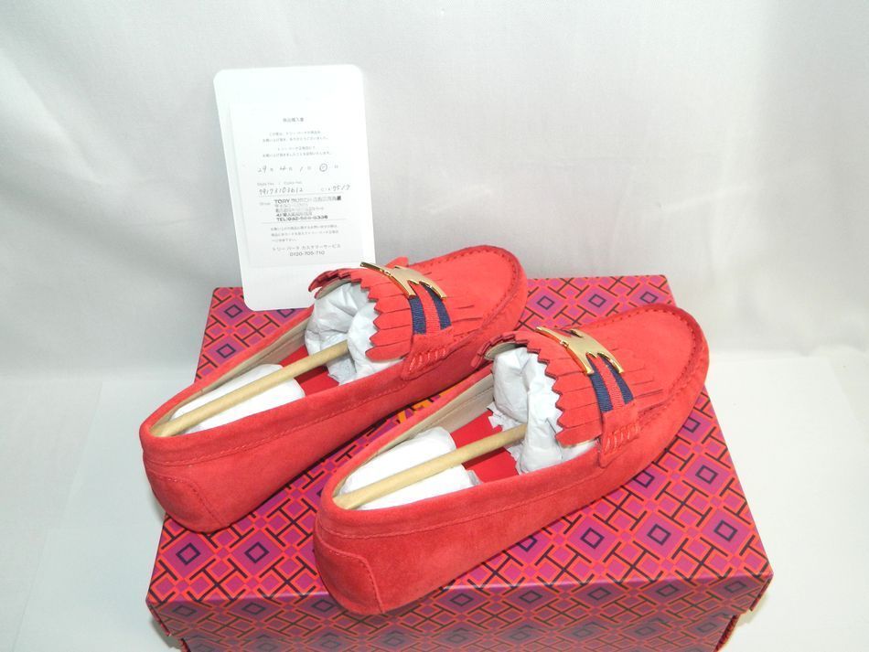 新品未使用 販売証明有り TORY BURCH ドライビングシューズ カラー75 赤系 スエード レザー サイズ7 約24cm フラットシューズ トリーバーチ
