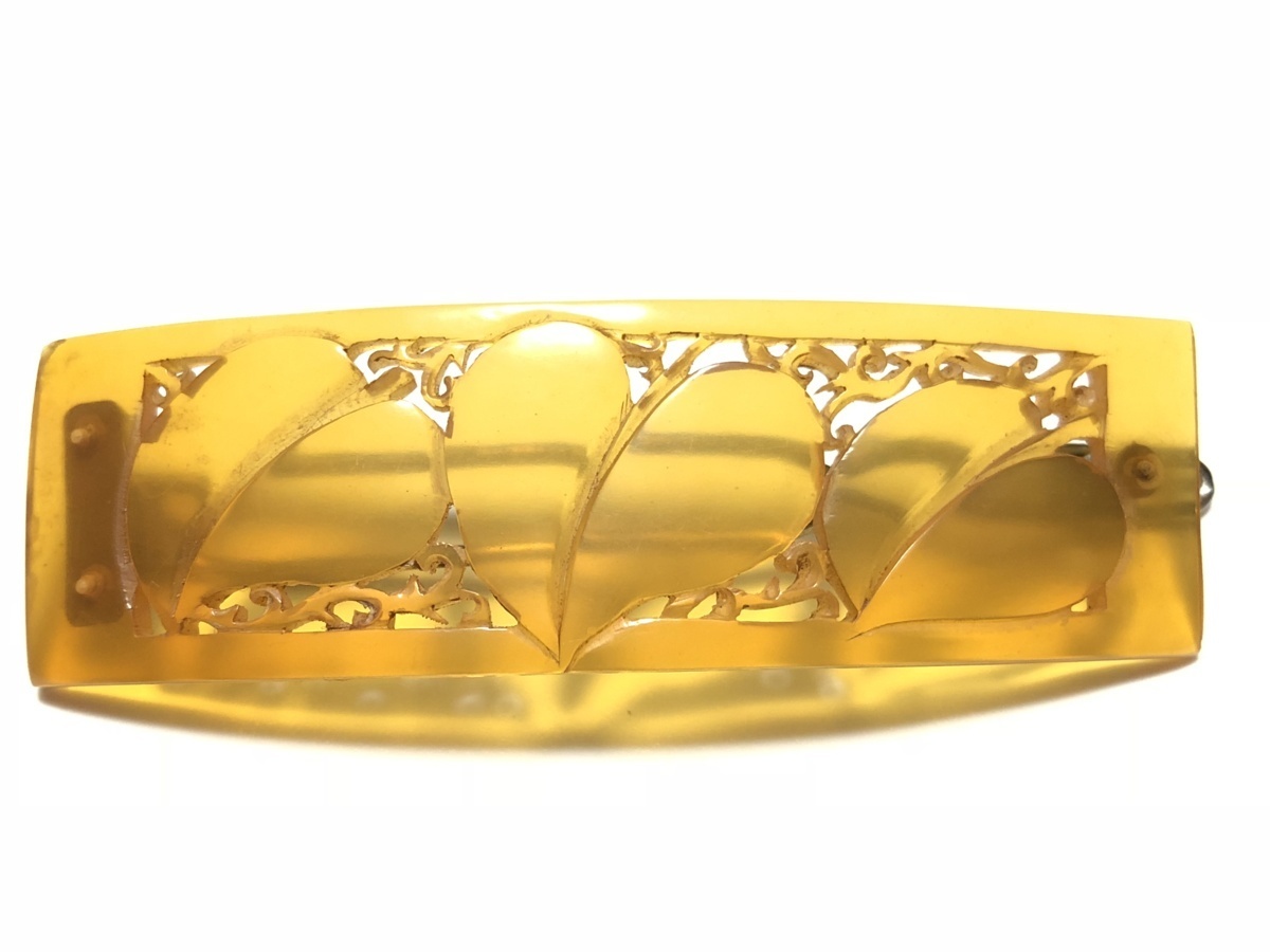 アンティークの白甲の本鼈甲を使用した、透かし葉細工のバレッタです。鼈甲部分に数か所の細かな虫食いがあります。