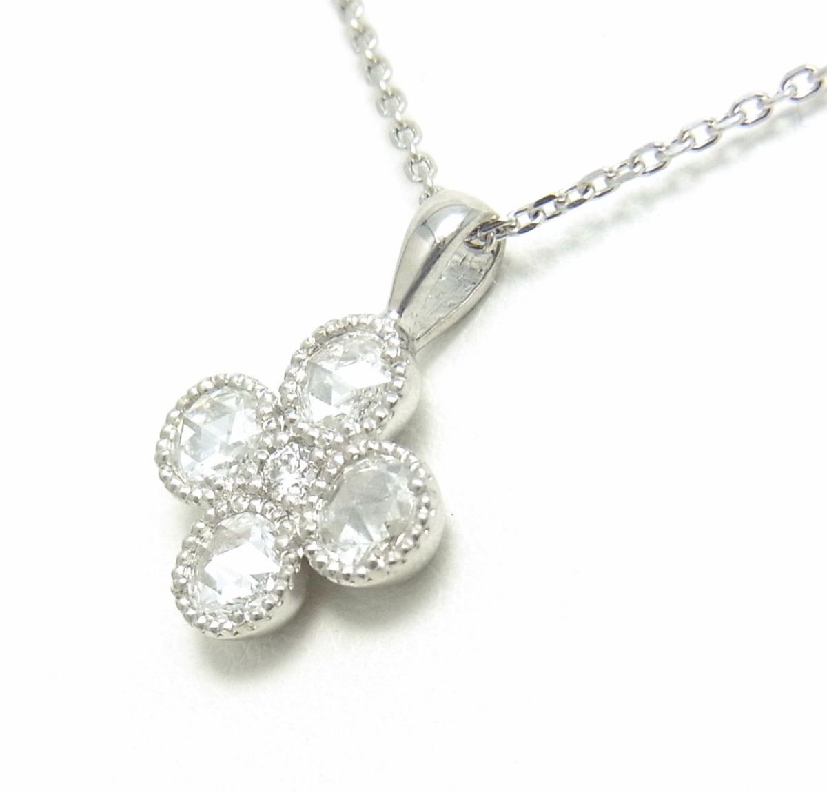 落ち着いたダイヤ本来の輝きの ローズカット 天然ダイヤ0.36ct プラチナ製ペンダントネックレス 卸価格/送料無料