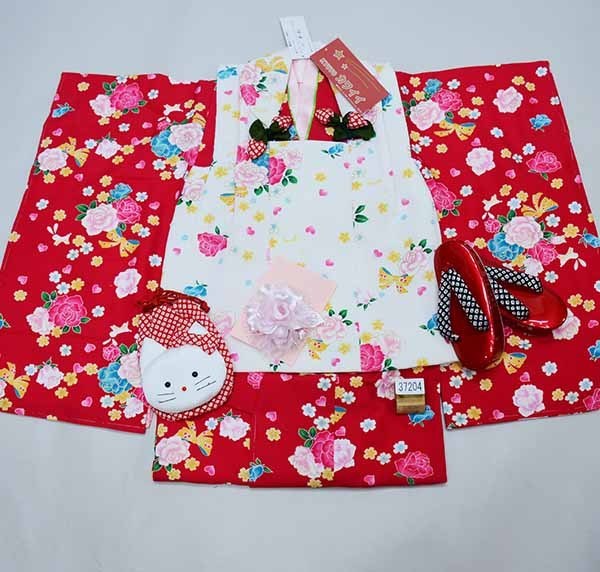 | 項目 | 三歳 被布 着物フルセット ・着物 ・長襦袢(半衿縫い付済)・被布コート ・巾着 ・髪飾り ・草履 ・伊達衿(縫い付済) ・付け紐2本(着物縫付済 ・着付け説明のご案内(ご要望のお客様のみ、詳しくは以下明記しております) 以上フルセット |