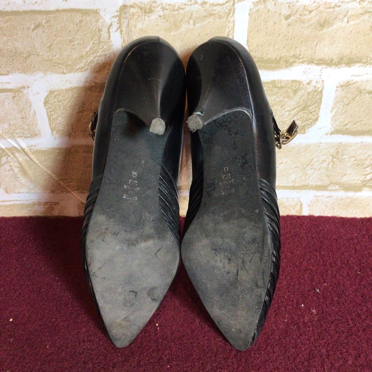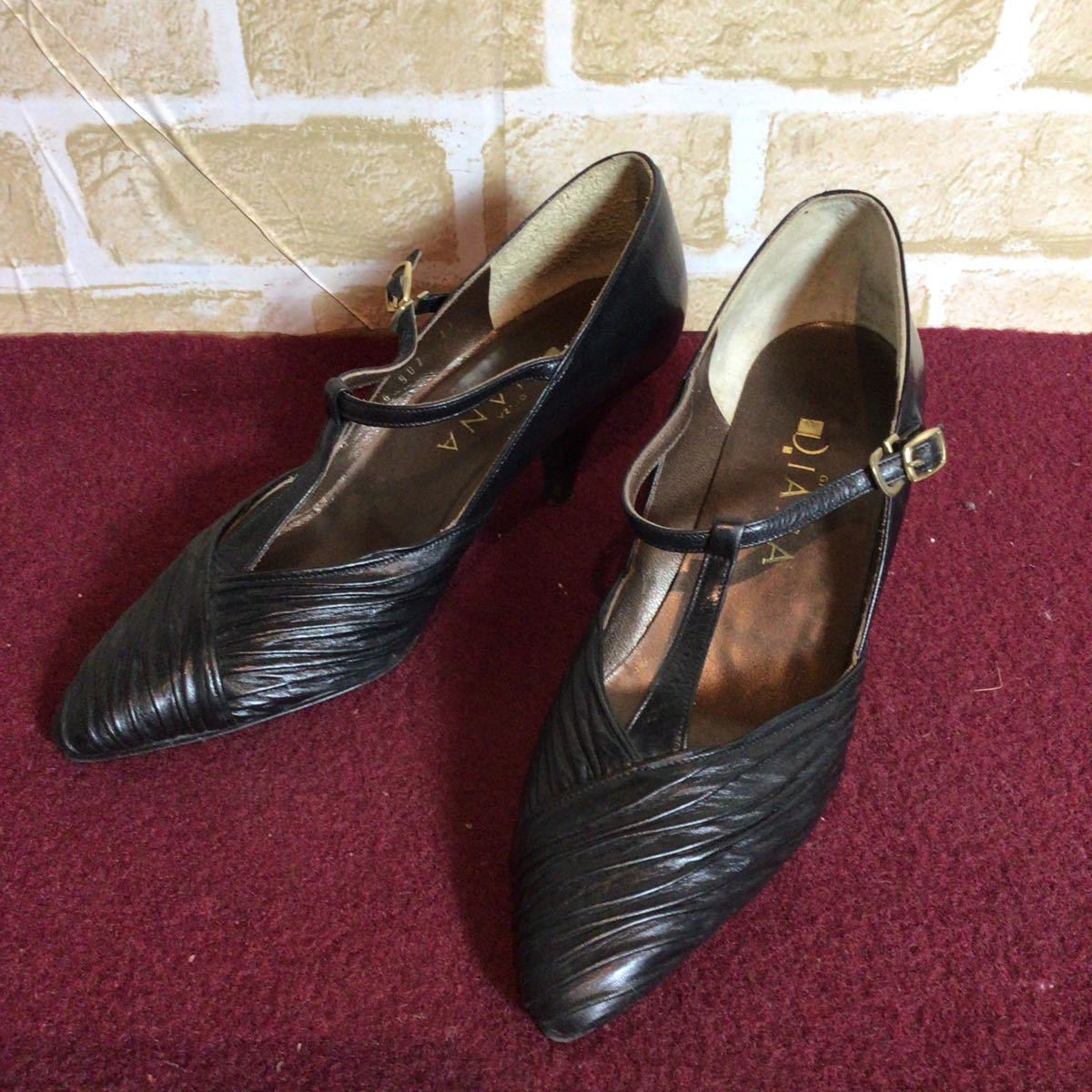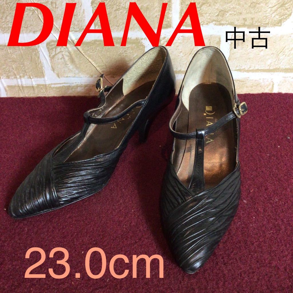 【売り切り!送料無料!】A-131 DIANA!ストラップベルト付きパンプス!黒!23.0cm!レザー!お洒落デザイン!七五三!入園入学式、卒園卒業式!中古!