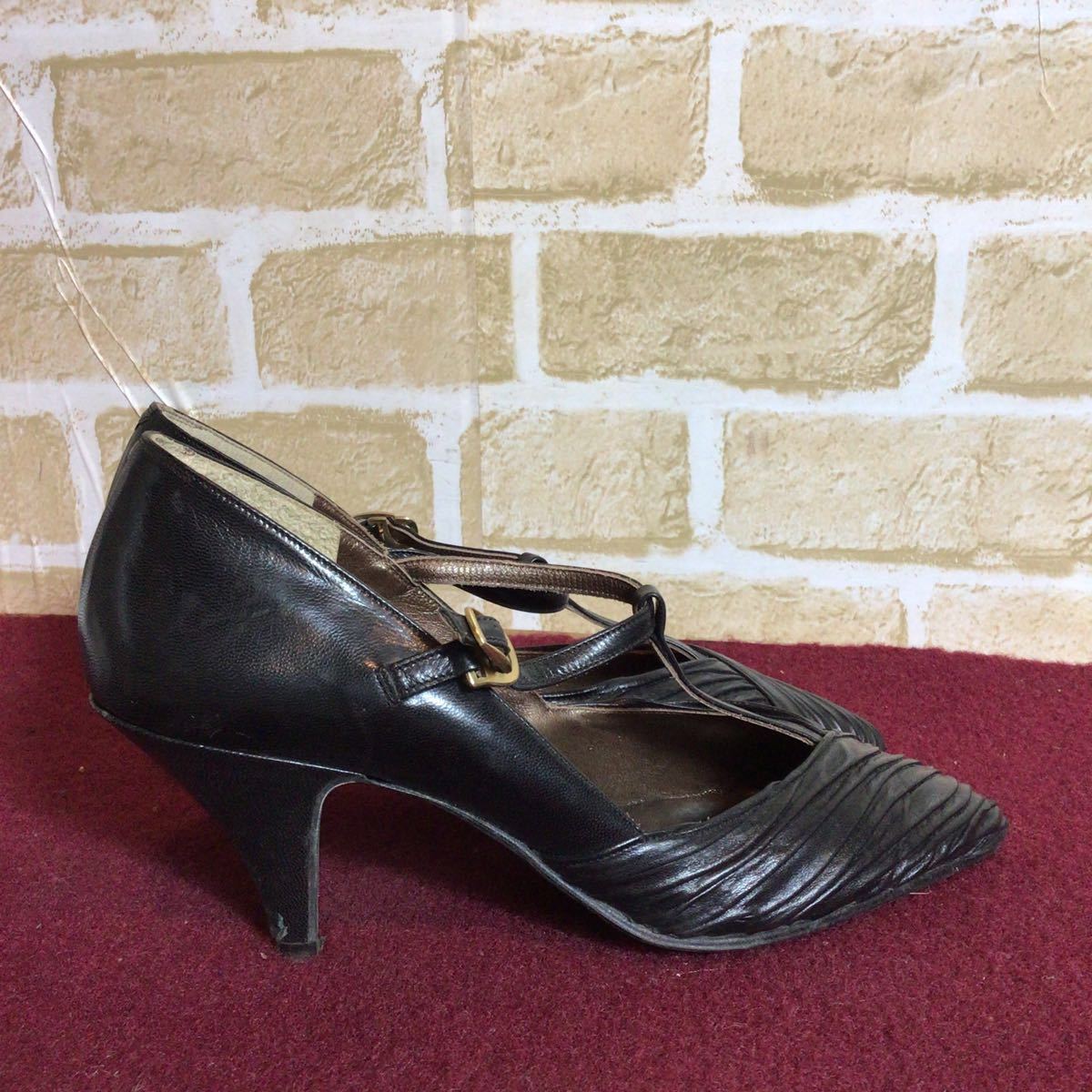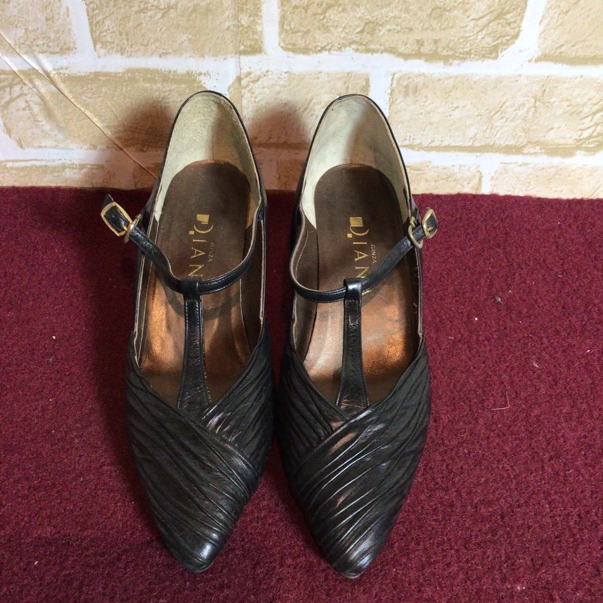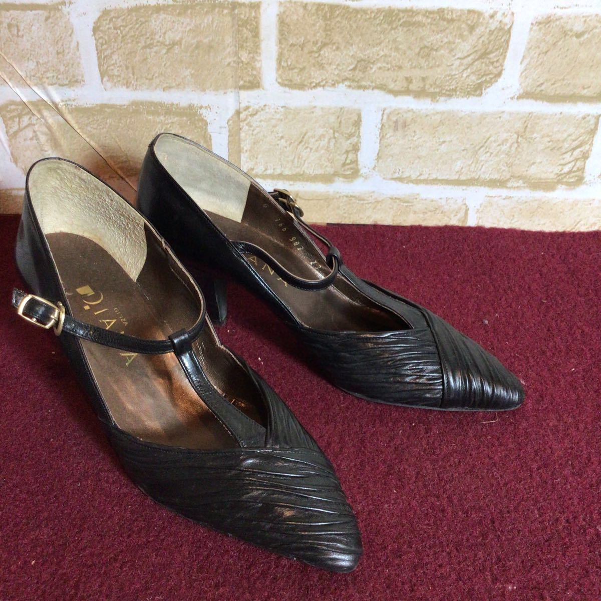 【売り切り!送料無料!】A-131 DIANA!ストラップベルト付きパンプス!黒!23.0cm!レザー!お洒落デザイン!七五三!入園入学式、卒園卒業式!中古!