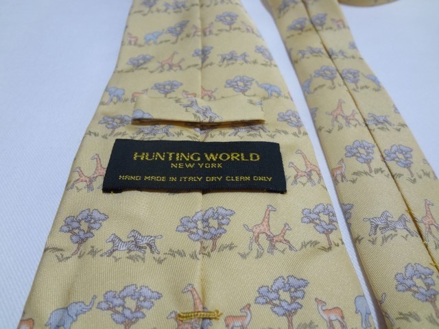 ■ハンティングワールド ネクタイ 黄色 絹100% 落札当日同梱可能 ¥300で3本まで同梱可能 B■
