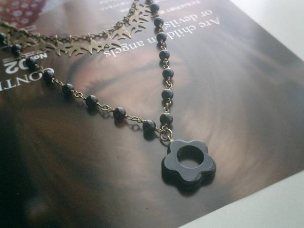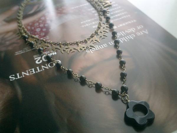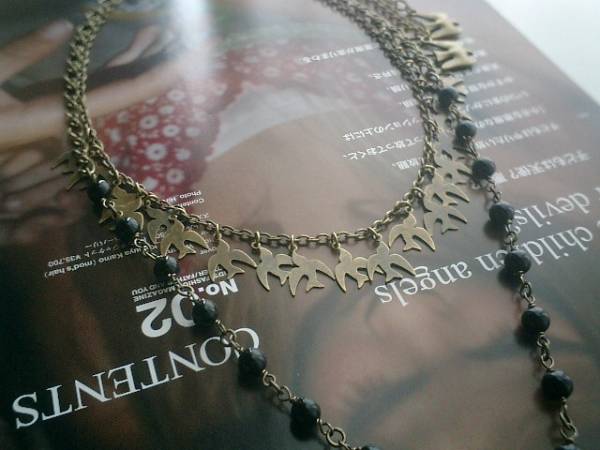 ロゼッタの仮縫い・・シリーズです♪ノスタルジックな鳩・・シックな鳩さんとオニキスのネックレス2本セットです♪♪単品でもセットでも色々な組み合わせで楽しんでいただけます♪小鳥さんのチャームと深い黒のオニキスがニューヨークモダンしています♪13ミリ位のプレスチャームの鳩さんのネックレスは52センチ+アジャスター12センチで最長64センチ位です♪6ミリの丸玉のオニキスのトップは23ミリ位のフラワーリングのオニキスです♪長さは全長82センチ位で調節自由です♪それぞれ単品やブレスレットも出品しています♪♪シンプルで長く着けていただけるデザインを考えて作りました♪ハンドメイドをご理解頂いてノークレーム、ノーリターンでお願いします