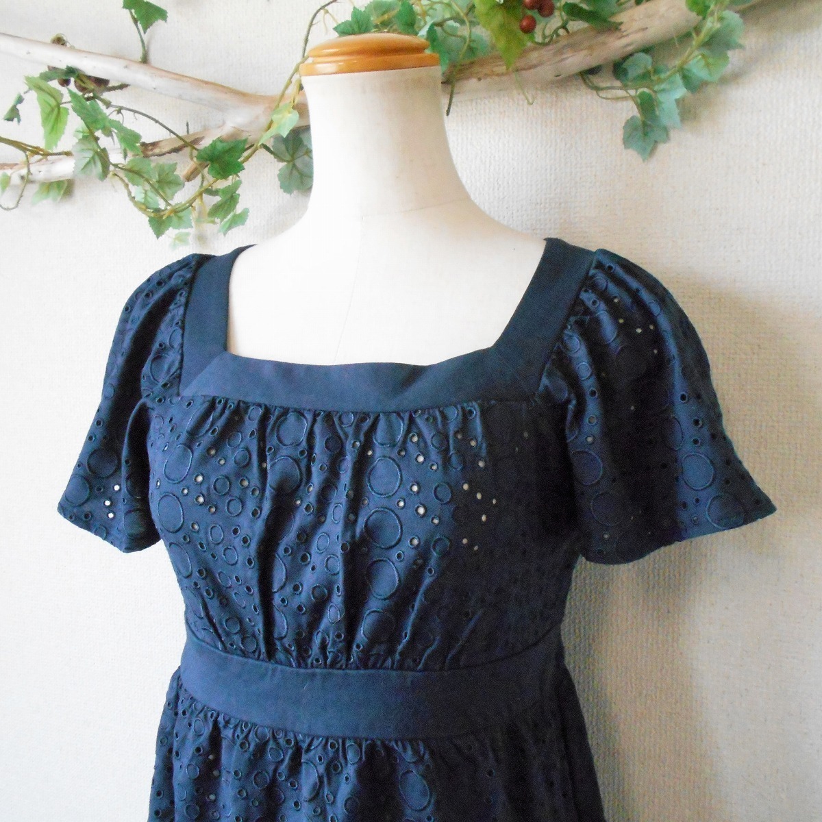 新品 タグ付き 組曲 クミキョク KUMIKYOKU レディース 用 カットワーク 刺繍 夏 向き カットソー 紺 2
