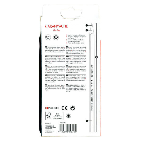 送料無料 色鉛筆 油性 カランダッシュ スイスカラー 12色紙箱 1284-812/3305