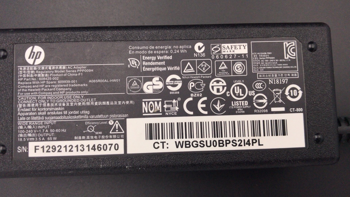 2050180★中古 HP ACアダプター Serier PPP009H 18.5V 3.5A 現状品