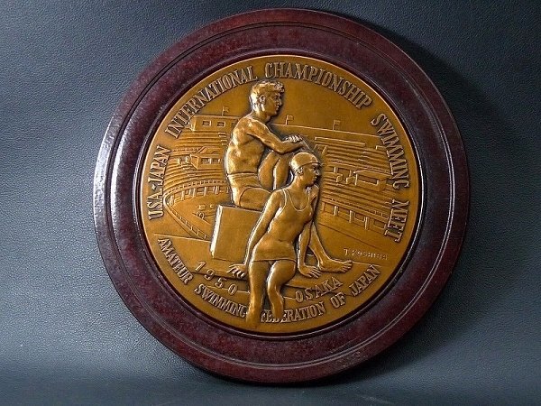 ▲801524*11▲高石勝男旧蔵 1950年 水泳大阪大会 記念盾 USA-JAPAN INTERNATIONAL CHAMPIONSHIP SWIMMING MEET T.KOSHIBA