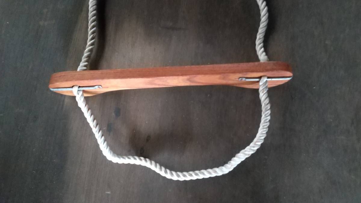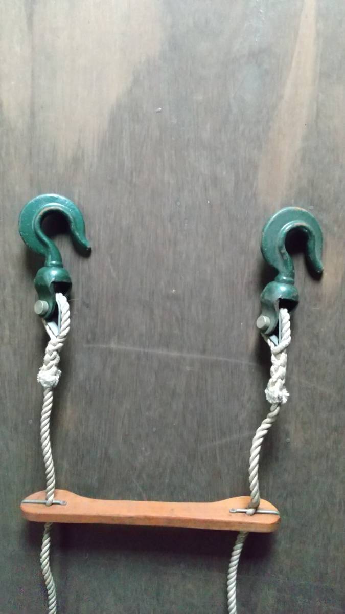 我が家の二階の廊下の端に長期間設置していたので、木部、ロープ等に腐食はなく、フックの塗装の禿げた個所