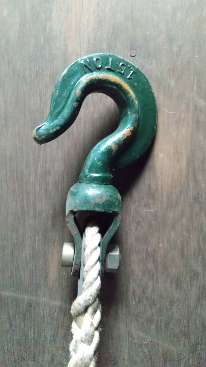 最上段の取り付け金具は、スイベル付き鍛造フック、1.5トン(耐荷重)