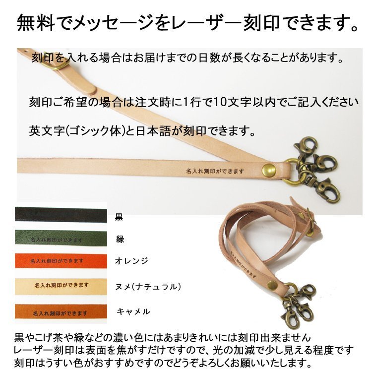 ●無料でレザー刻印可能ですメッセージや名前など、刻印ご希望の場合は落札後に一行で十文字以内でお申し付けください。刻印を入れる場合はお届けまでの日数が長くなることがあります。