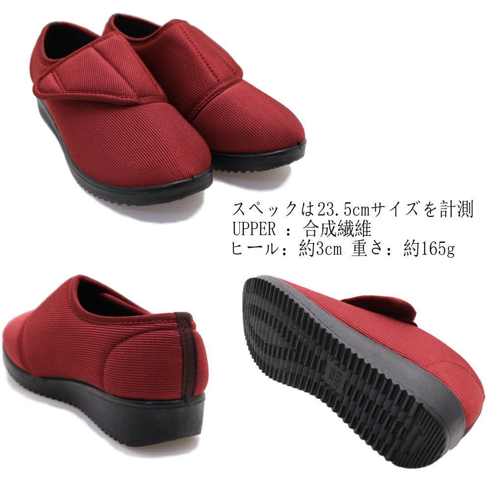 出品の色/サイズ ブラウン/24.5cm 注)色サイズ別に出品していますので落札後の変更は出来ません必ずご希望の色サイズにご入札をお願いします *送料は地域別になります、スマートフォンご利用の方は下段「ストアの情報」よりご覧ください。 下記URLからご覧頂けます http://auctions.yahoo.co.jp/html/profile/cxyqt422.html 注)オークション終了後、店舗からのメールが届くまでご決済はお待ち下さい。 レディース 軽量 コンフォートシューズ 履き口が大きく開くので、介護シューズやリハビリシューズにも 面ファスナータイプで脱ぎ履きが簡単です。 ワイズは履き心地のいい幅広設計。 軽量で屈曲性のあるアウトソールでしなやか設計!! カラー:黒、ブラウン、ワインの3色を出品しています。 ご希望の色サイズへご入札をお願い致します。 ★ワイズ…表記4E(実寸2?3E相当) ★ヒール高…約3.0cm ★重量…約165g(測定:片足23.5cm) ★素材…合成繊維・合成底 ※フィット感の満足度は人により様々でございます、ご参考頂きご検討お願い致します。 注2)当店舗は他モール、実店舗でも販売があるため、同時購入の場合も御座います。 また、お取り寄せになりました場合はご注文後、1-2営業日以内にお届け日のご連絡をさせて頂きます。 上記ご了承の上ご検討をお願い致します。 |