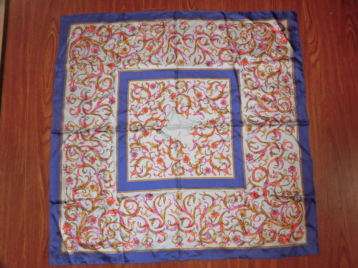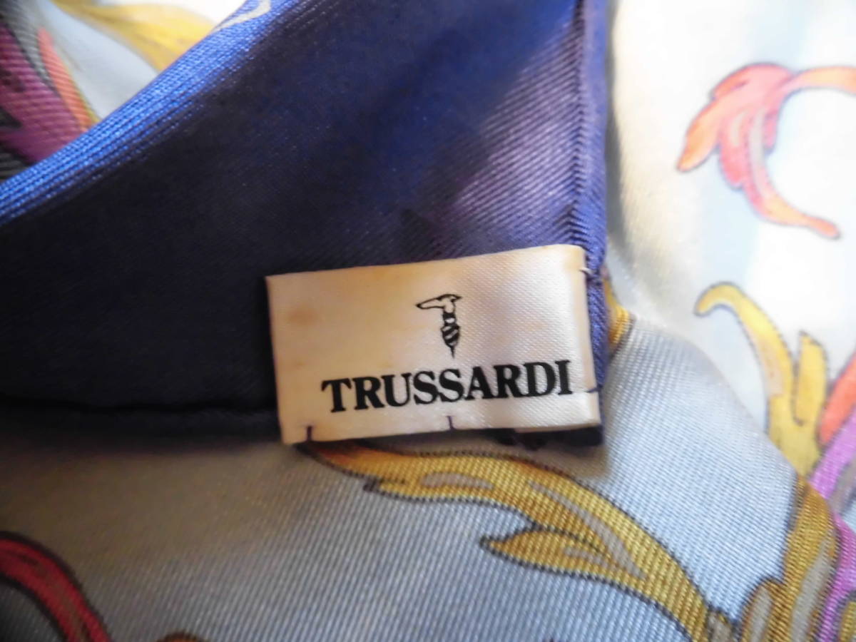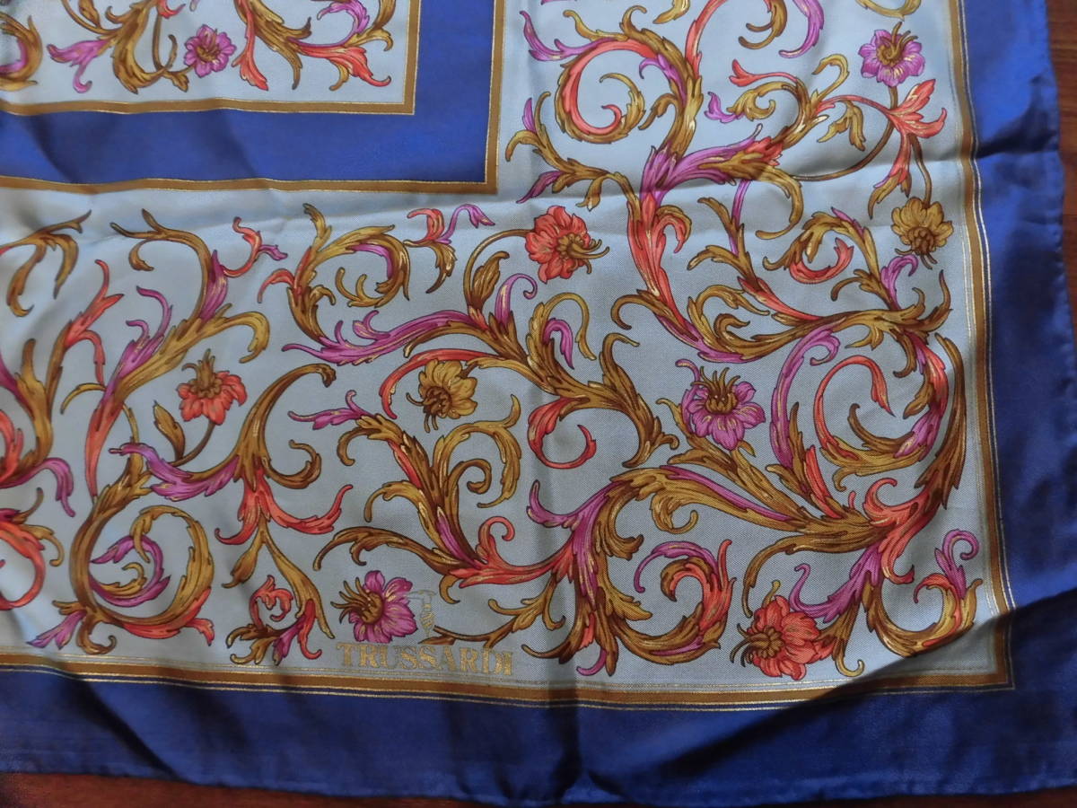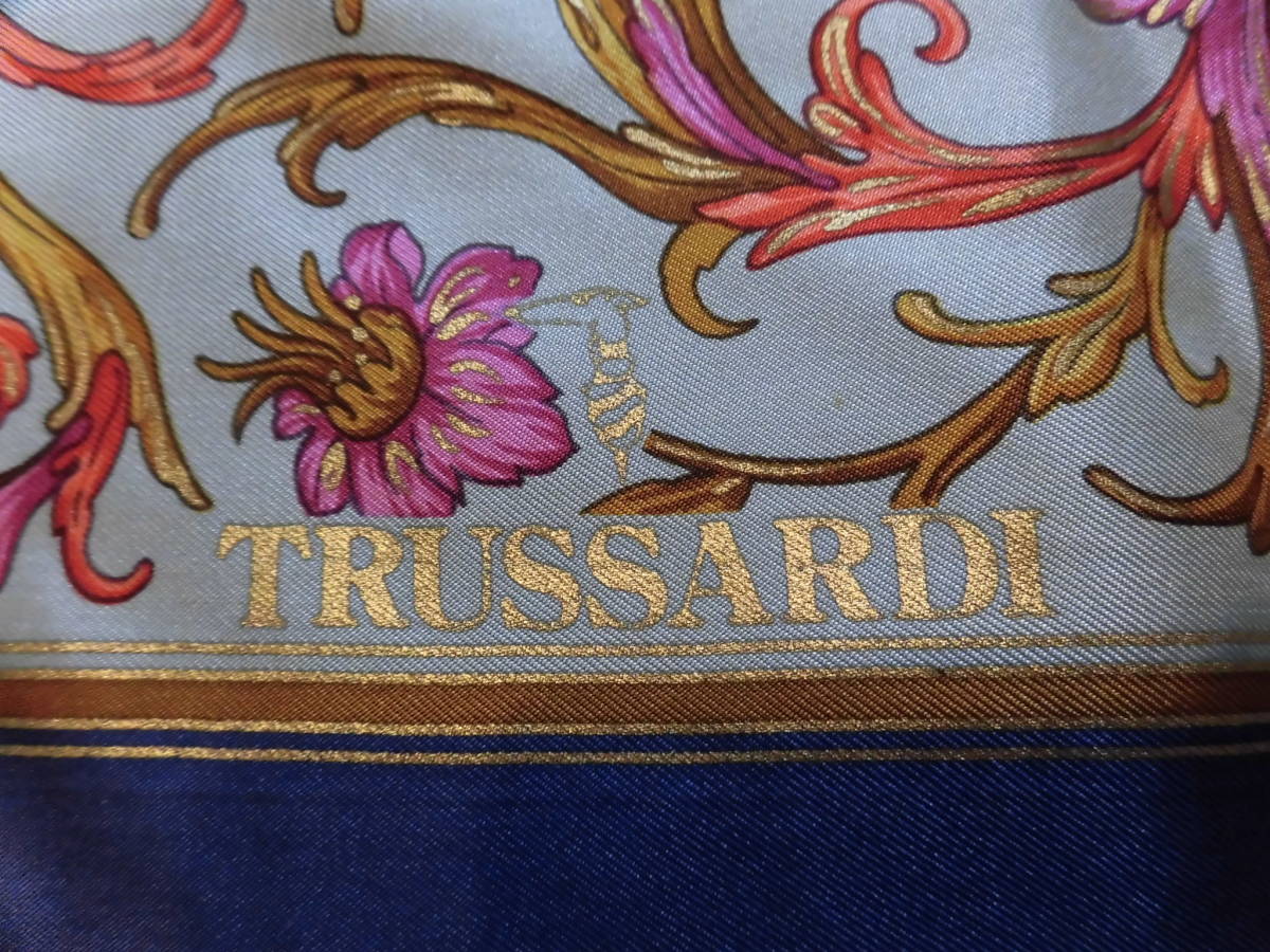 トラサルディ★紫×水色 シルクスカーフ★88㎝花柄