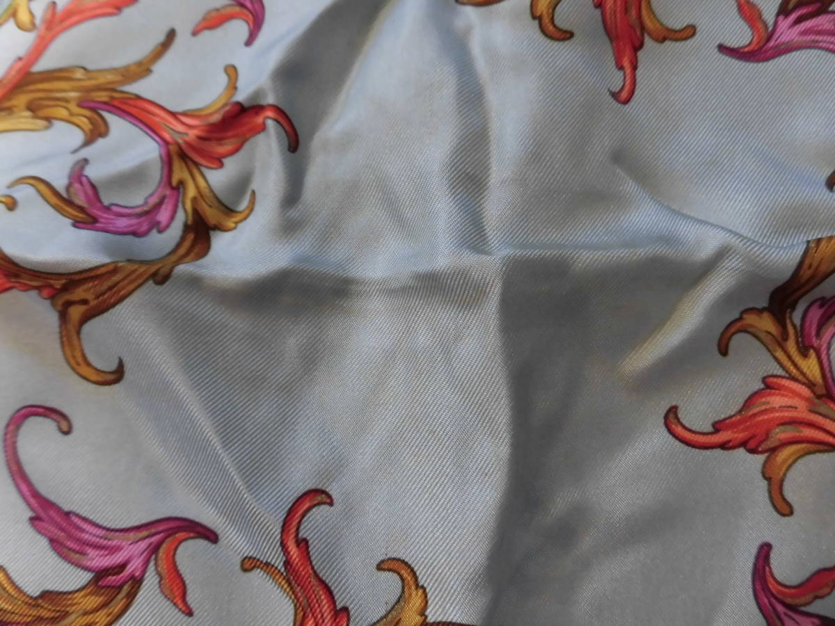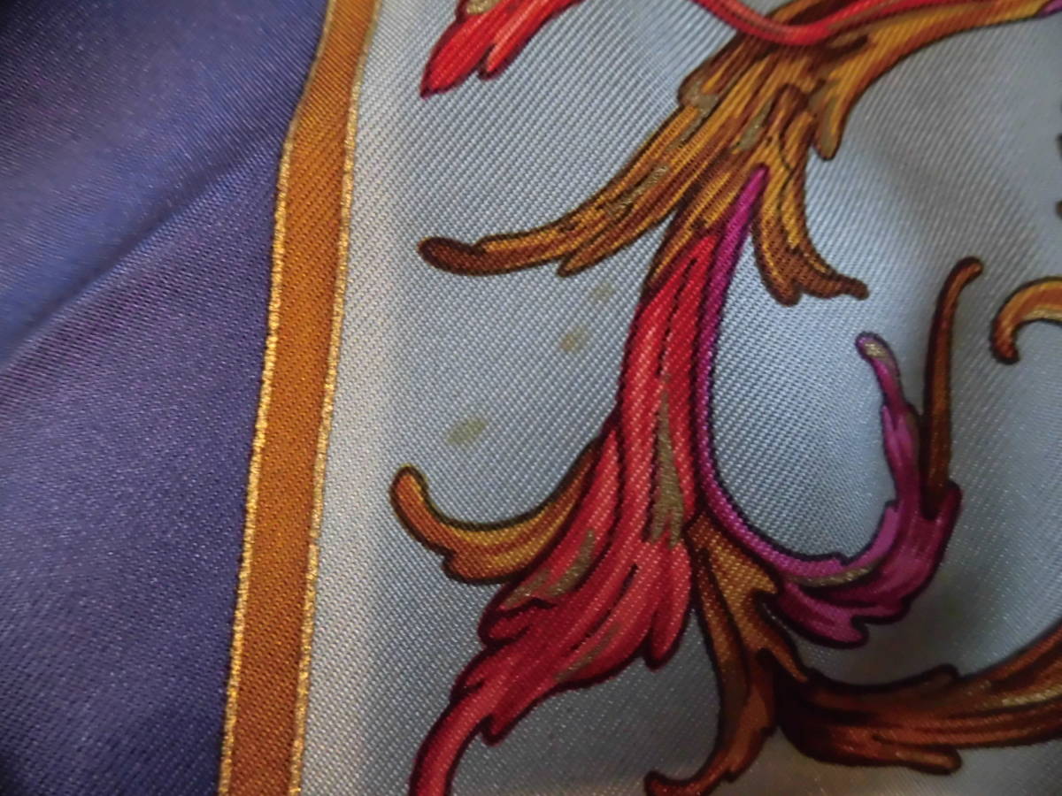 商品説明 ★トラサルディ★紫×水色 シルクスカーフ★88㎝花柄