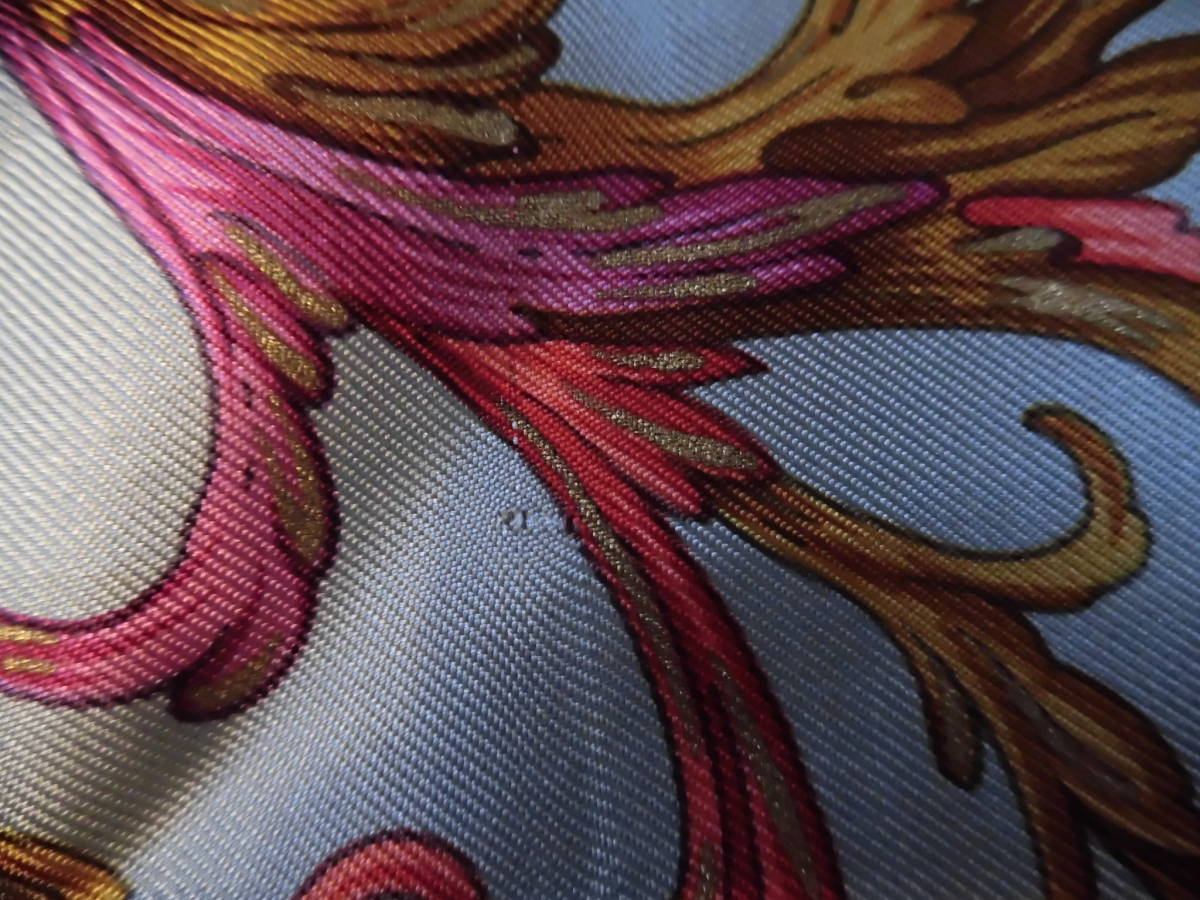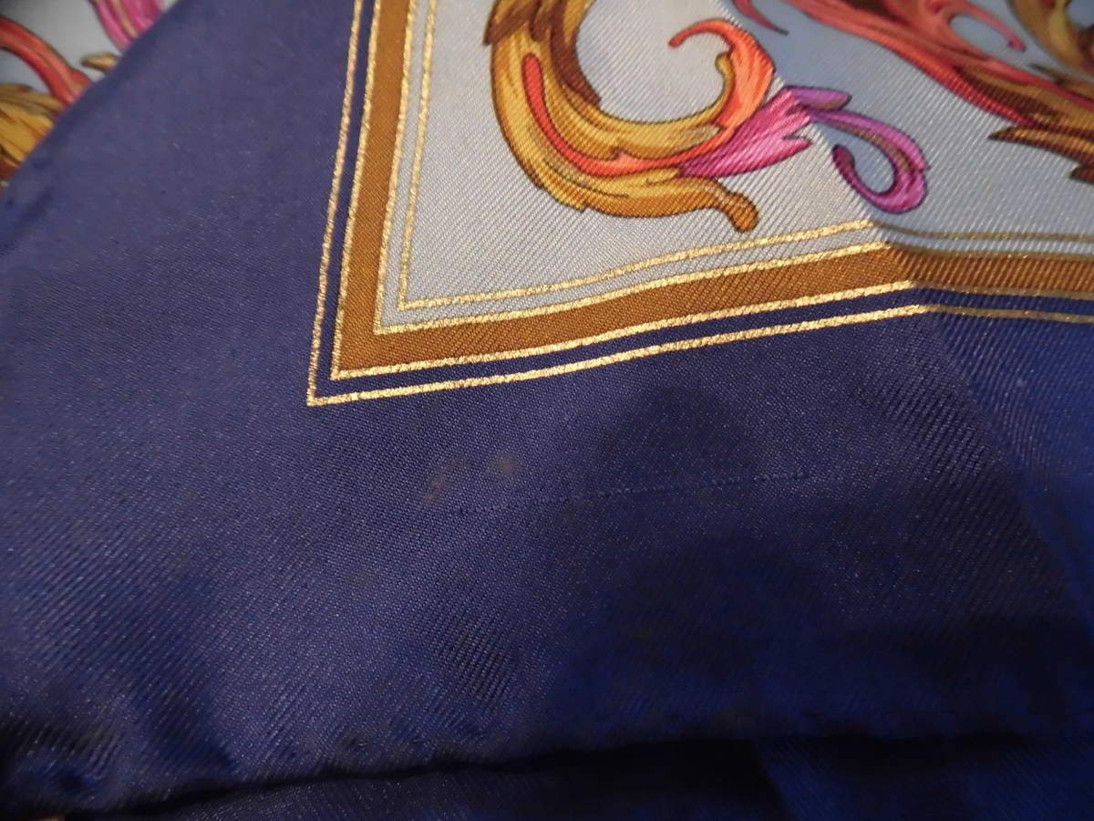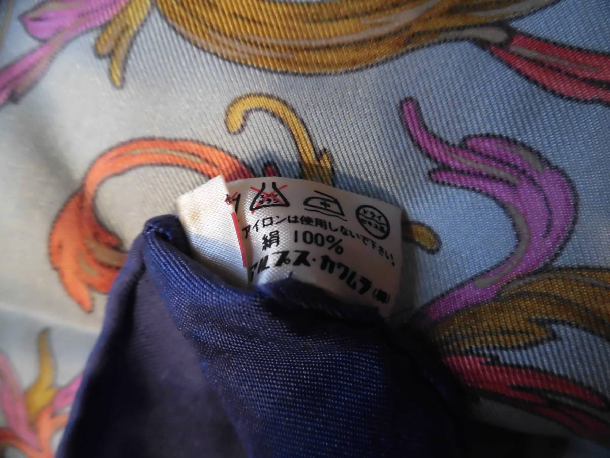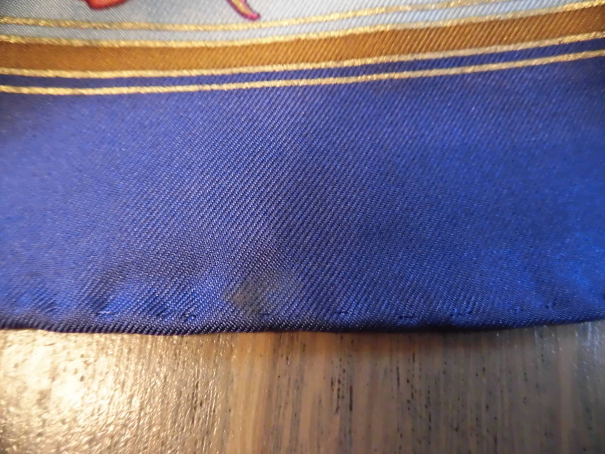 紫部分に薄いしみ、中央の水色部分に薄いシミ汚れがありますが、よく見ないとわからない程度だと思います