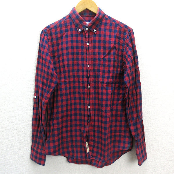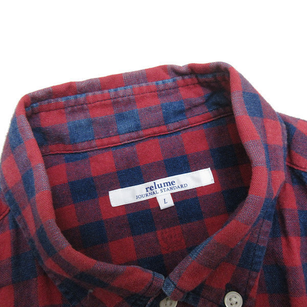 s■ジャーナルスタンダード/relume チェック柄 長袖シャツ/ボタンダウン【L】赤 紺/MENS/89【中古】