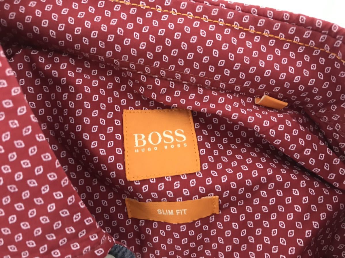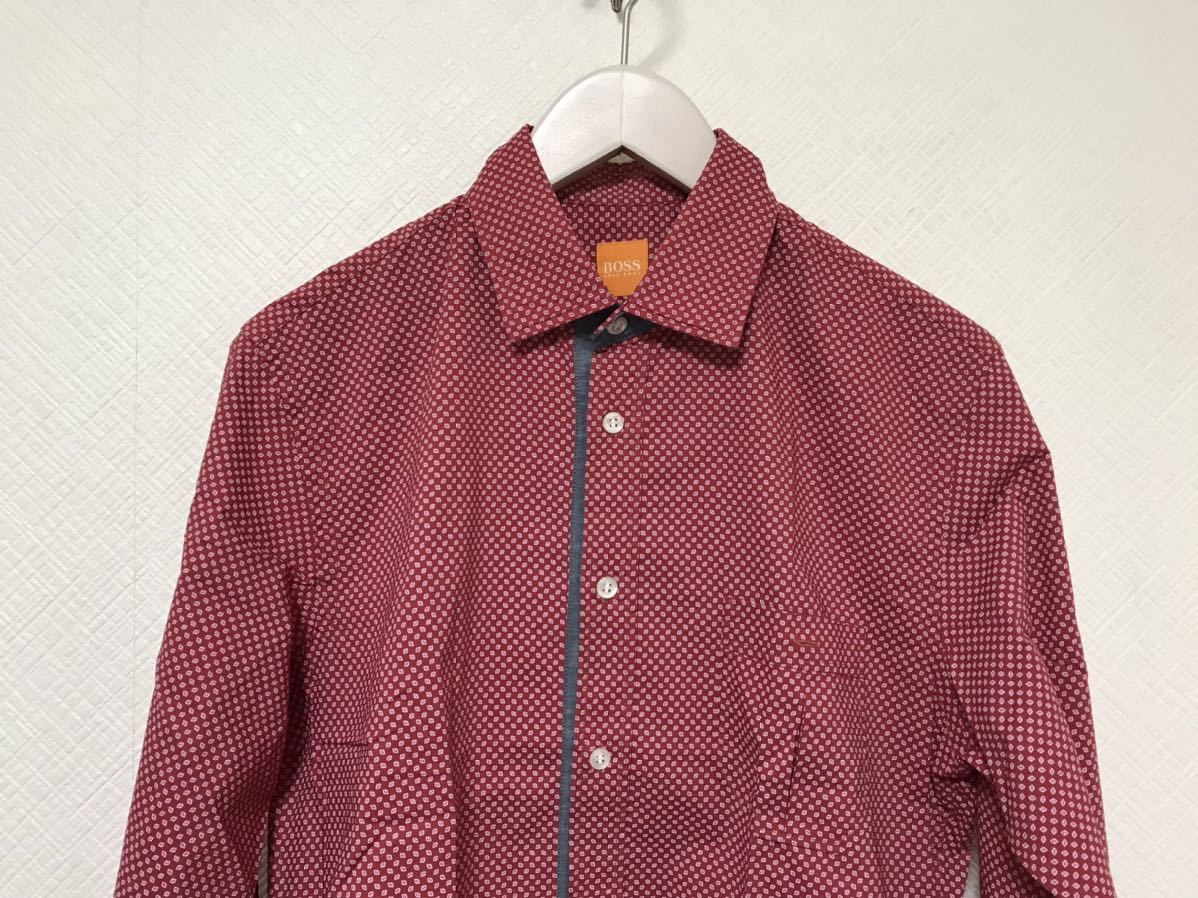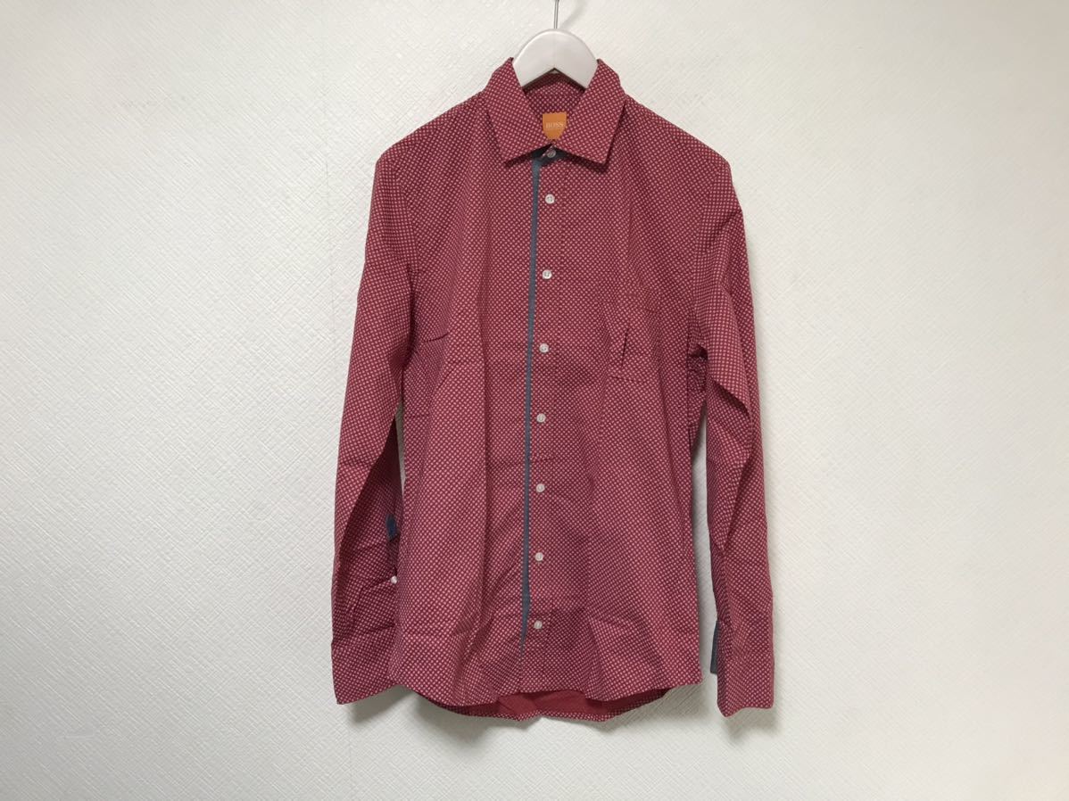 商品名:美品本物ヒューゴボスHUGOBOSSコットンシャツドレス長袖シャツメンズSビジネススーツ赤レッド柄