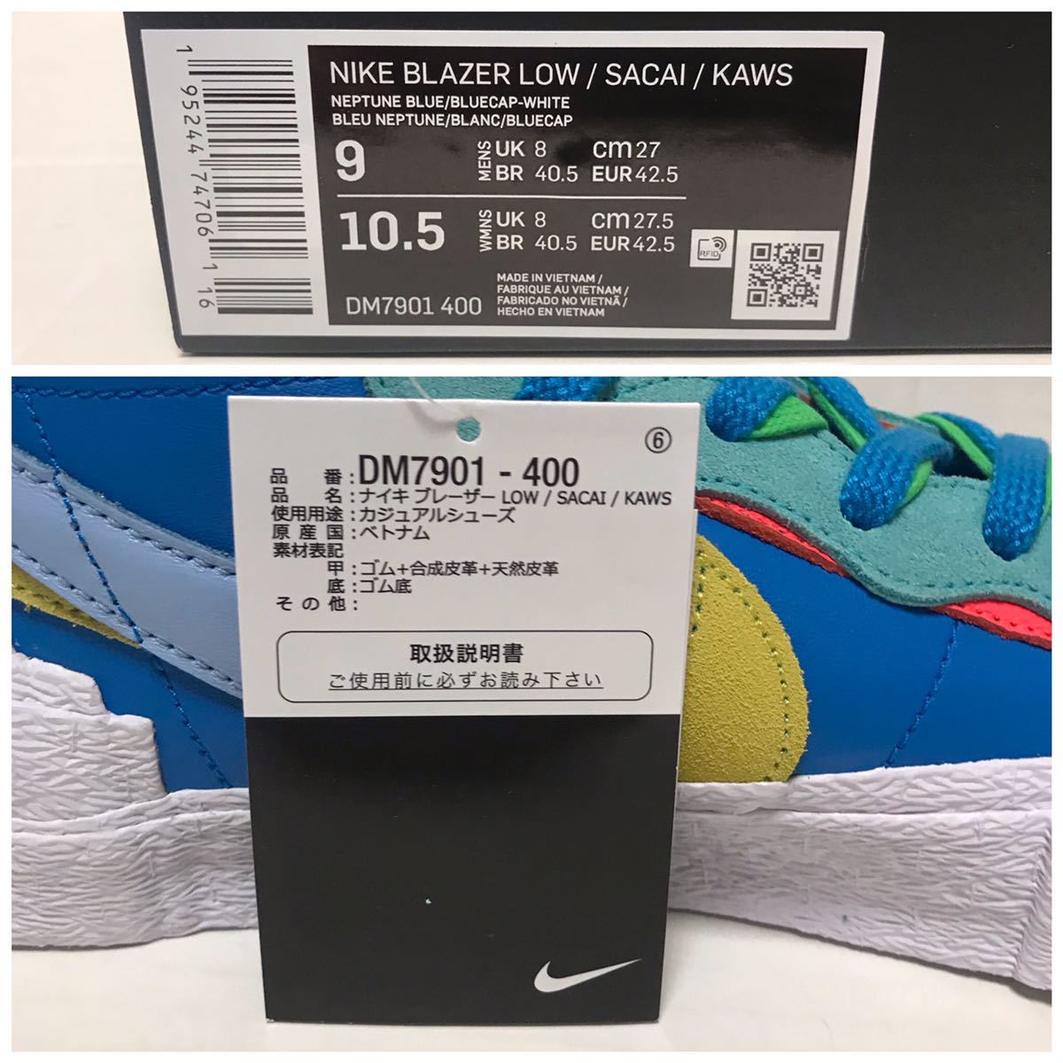 sacai サカイ× KAWS カウズ × NIKE ナイキ BLAZER ブレーザー LOW ロー 27.0 国内正規品 | |||||||||||