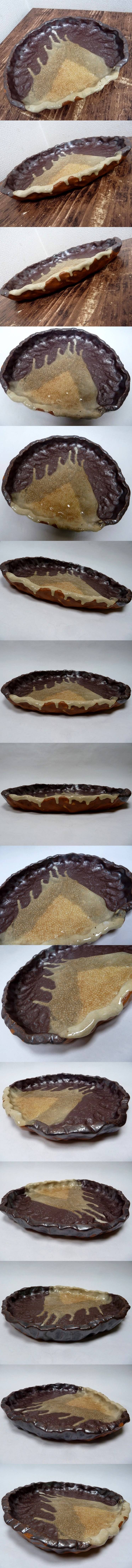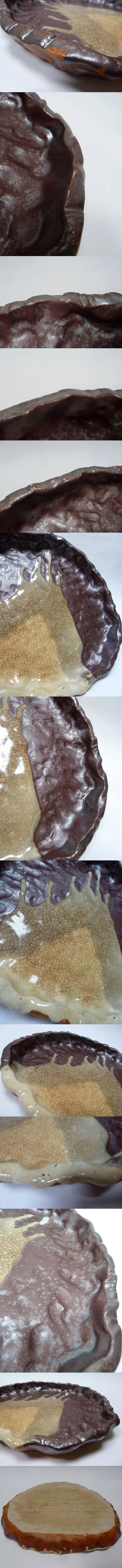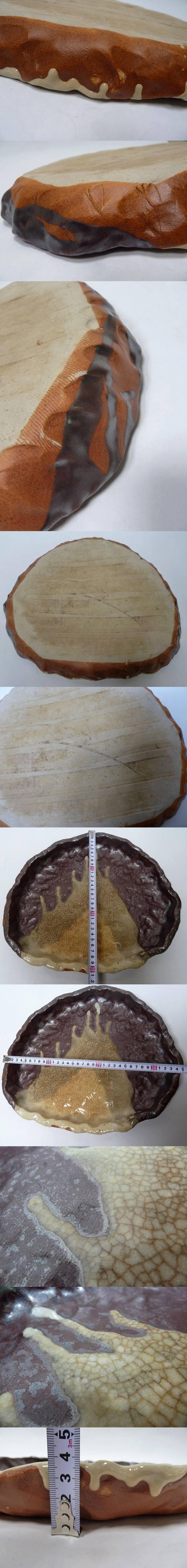 (☆BM)☆[最終SALE]陶器製 変わり口 個性的 大皿 横幅35.5㎝ 重さ2.4kg 盛皿 日本伝統工芸 ユニーク 和食器 三角形
