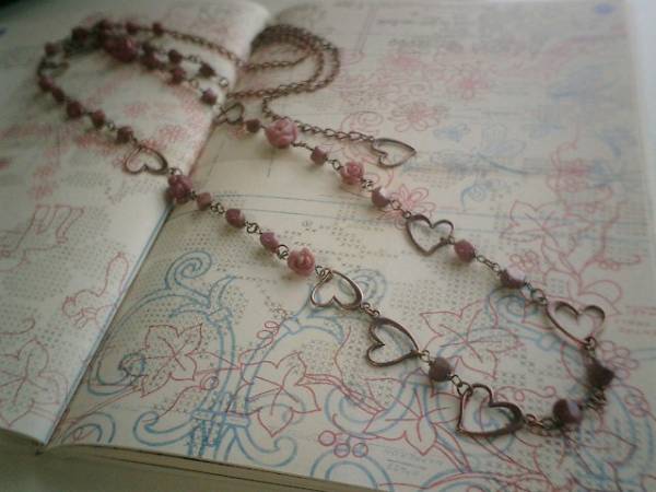 ロマンチック見本帳・・シリーズです♪シックなロードナイトのネックレスです♪6ミリから7ミリ位のロードナイトのタンブルに8ミリから12ミリ位までの大きさ違いのロードナイトの薔薇やハートのメタルチャームを合わせて可憐な表情です♪長さは全長110センチ位で調節自由です♪画像のように2連にされてもブレスにされても素敵です♪同じデザインの長さ違いのネックレスも出品しています♪シンプルで飽きのこないいつまでも着けられるデザインを考えて作りました!ハンドメイドをご理解頂いてノークレーム、ノーリターンでお願いします
