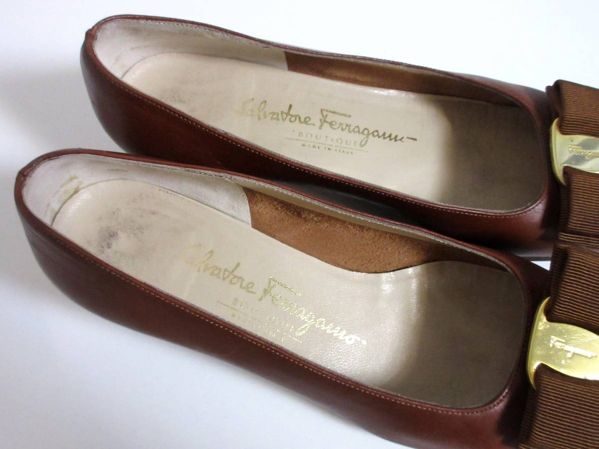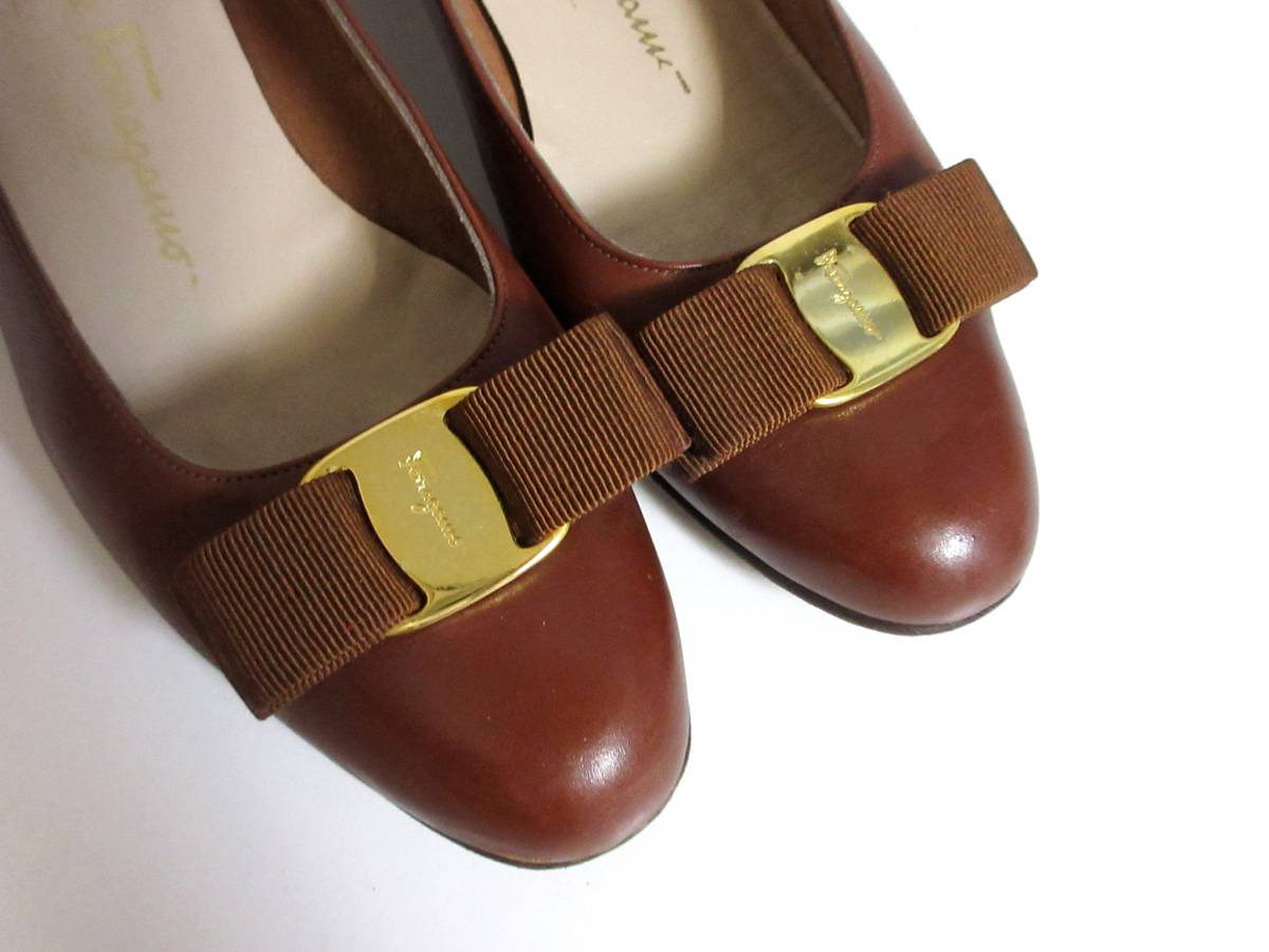 サルヴァトーレフェラガモ Salvatore Ferragamo ヴァラ レザー パンプス 茶 ブラウン 6 1/2 北4204